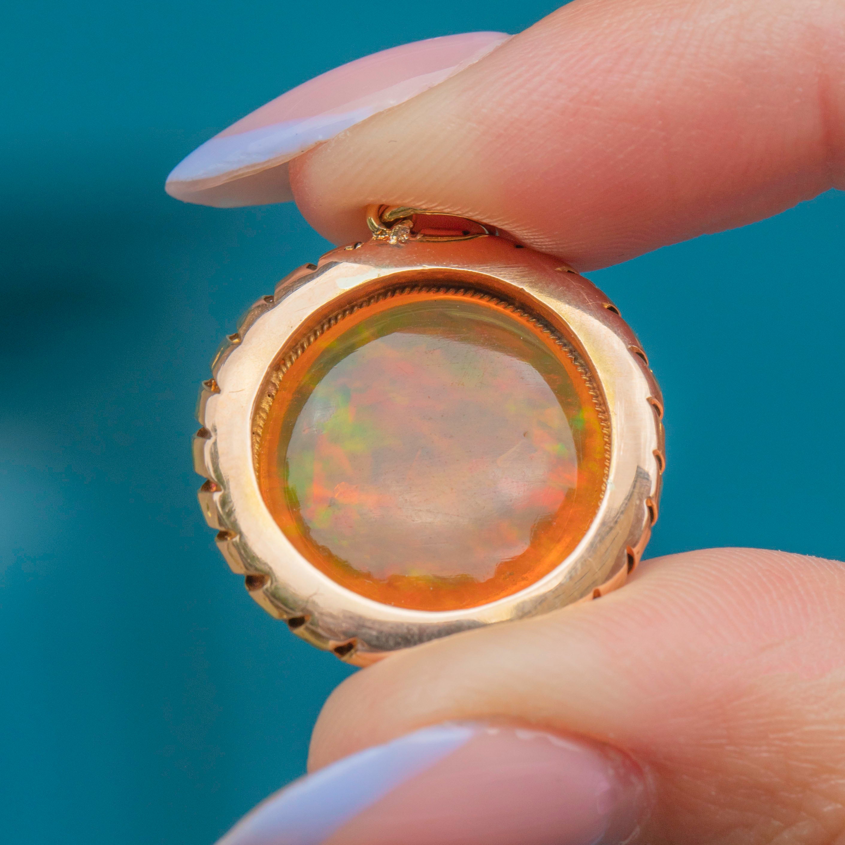 Antique 18ct Gold Fire Opal Pendant, 7.35ct Natural Solid Opal