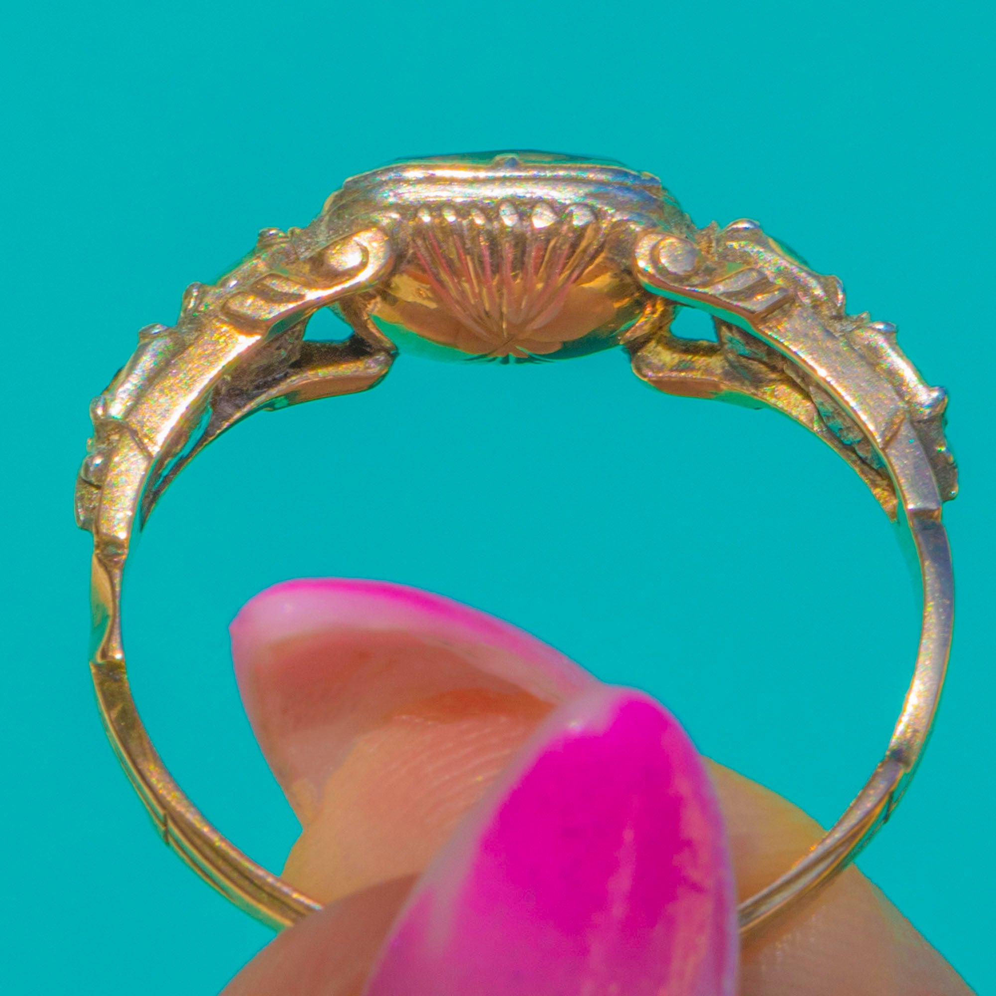 Rare 17th Century 15ct Gold Pink Foiled Stuart Crystal Ring, c.1780