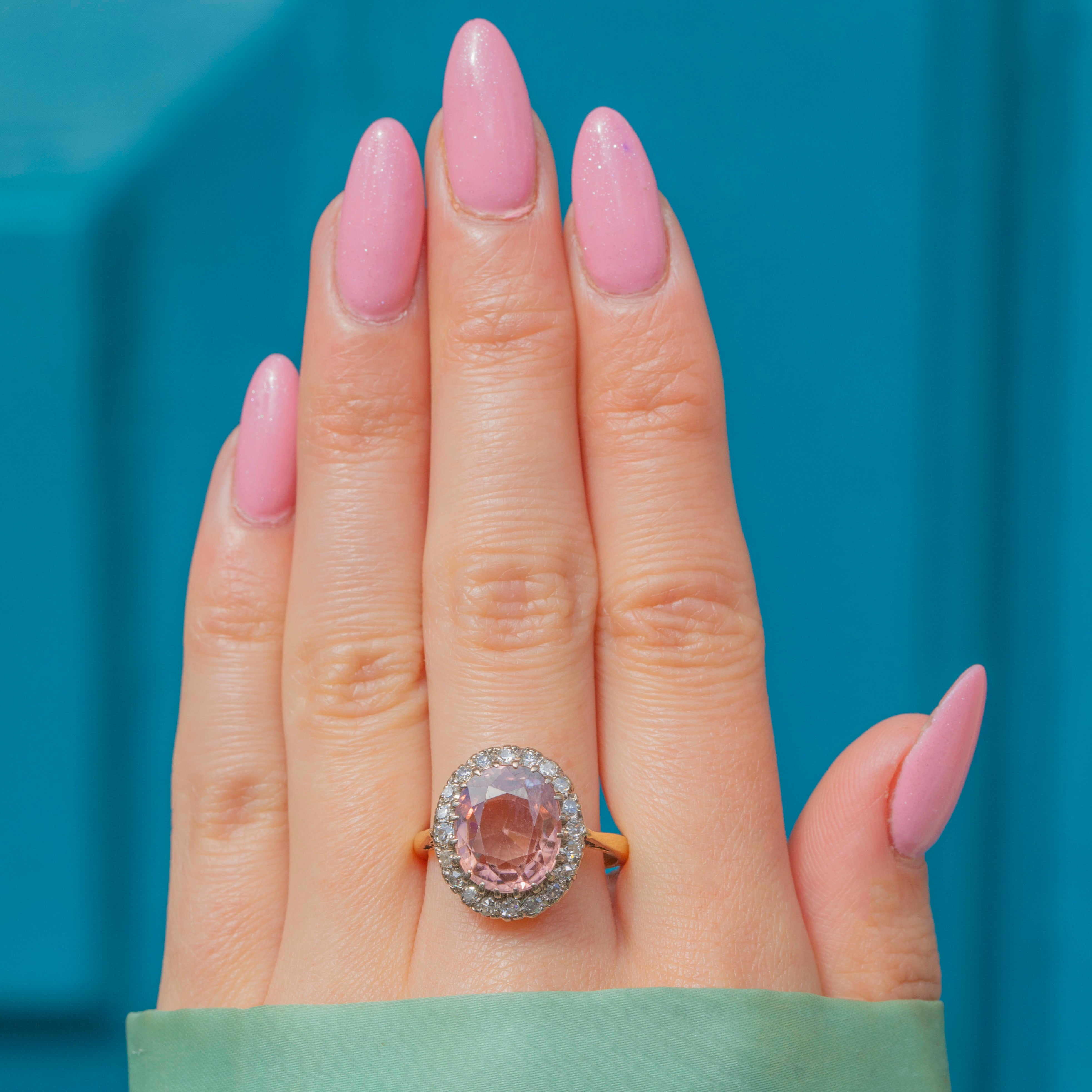 Rare 18ct Gold Pink Zircon Diamond Cluster Ring, 6.00ct Zircon