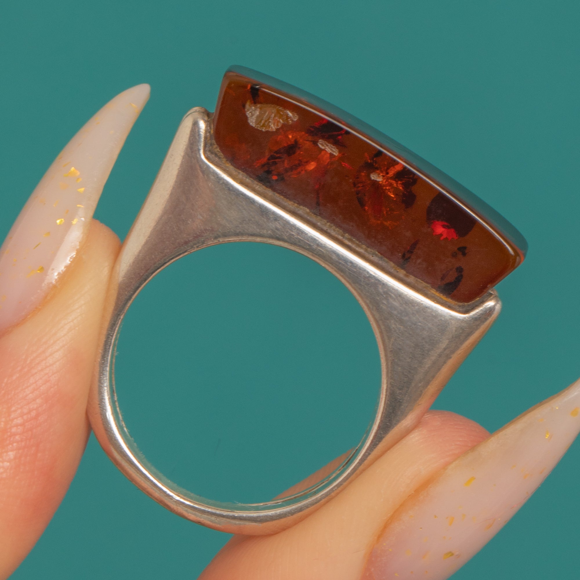 Sterling Silver Modernist Brutalist Amber Ring