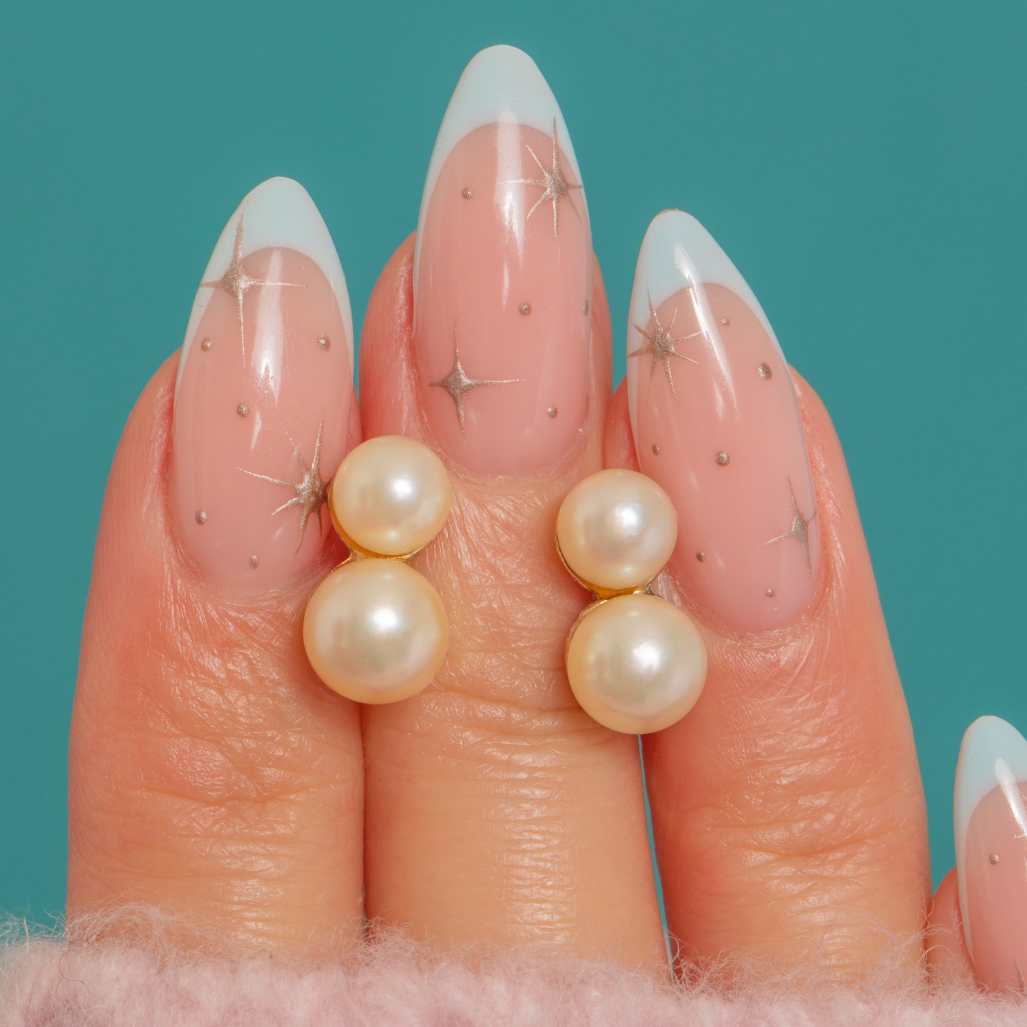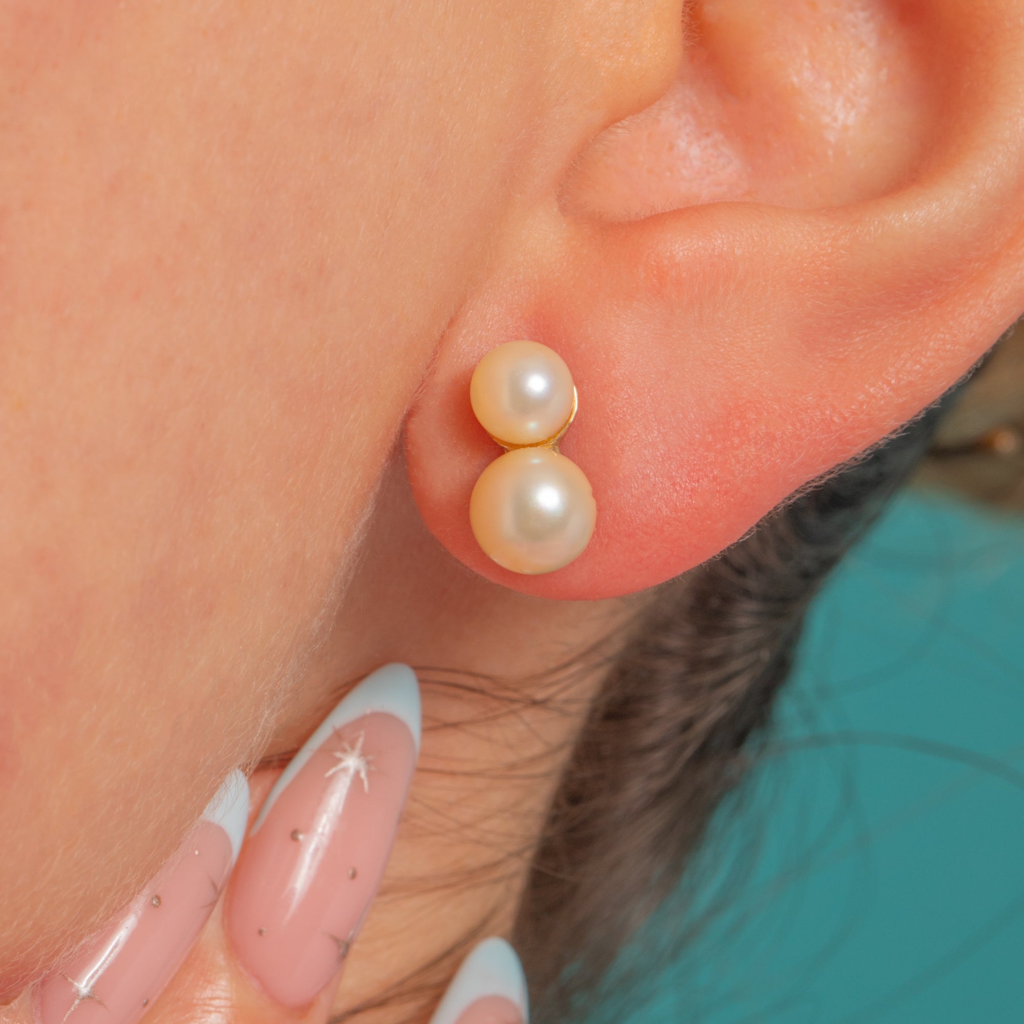 Elegantly minimal and endlessly wearable, these 9ct Gold double Pearl studs stack two creamy, lustrous Pearls in a refined vertical duo. The sleek low cup settings show just a whisper of warm Gold, letting the soft silvery-pink iridescence of the Pearls take centre stage.