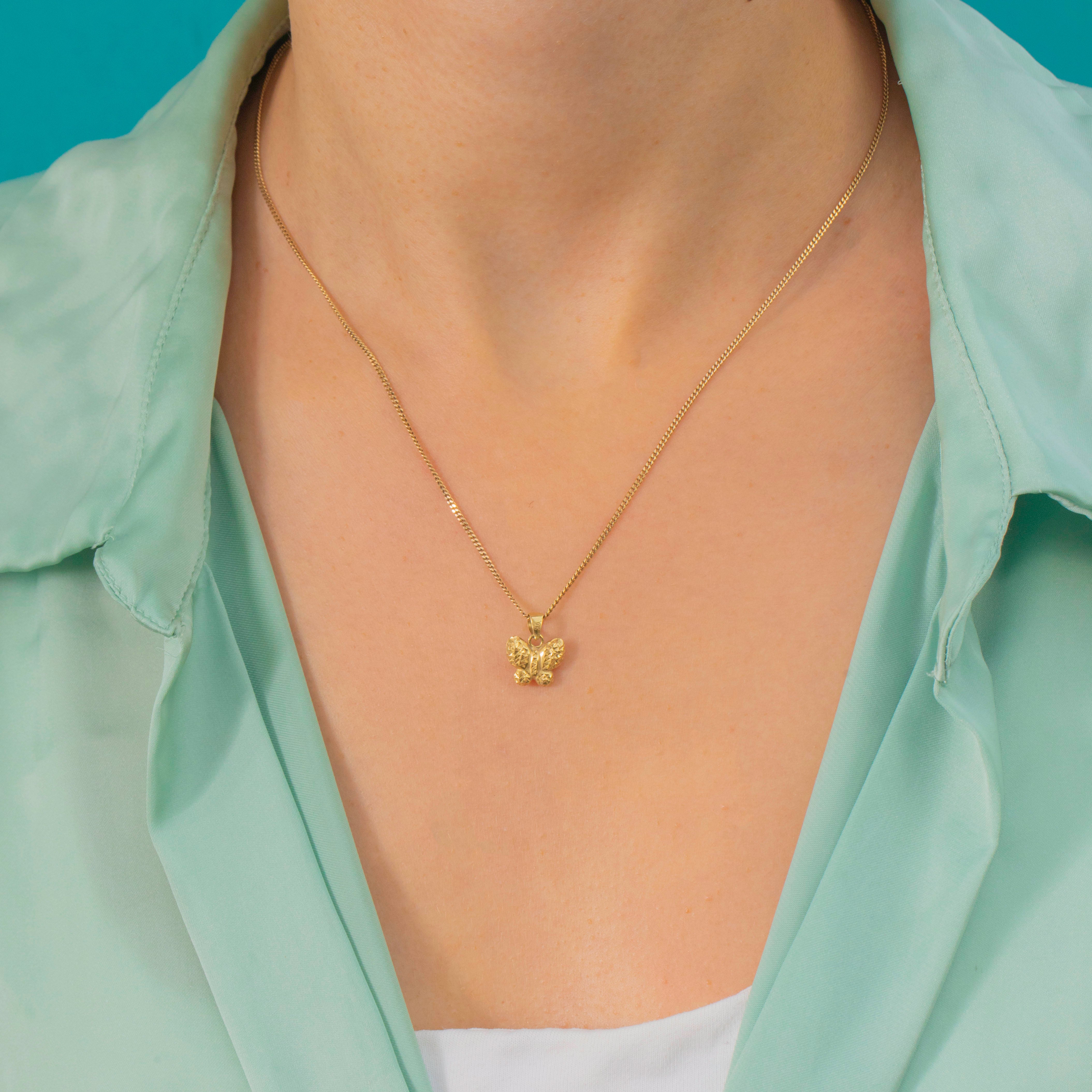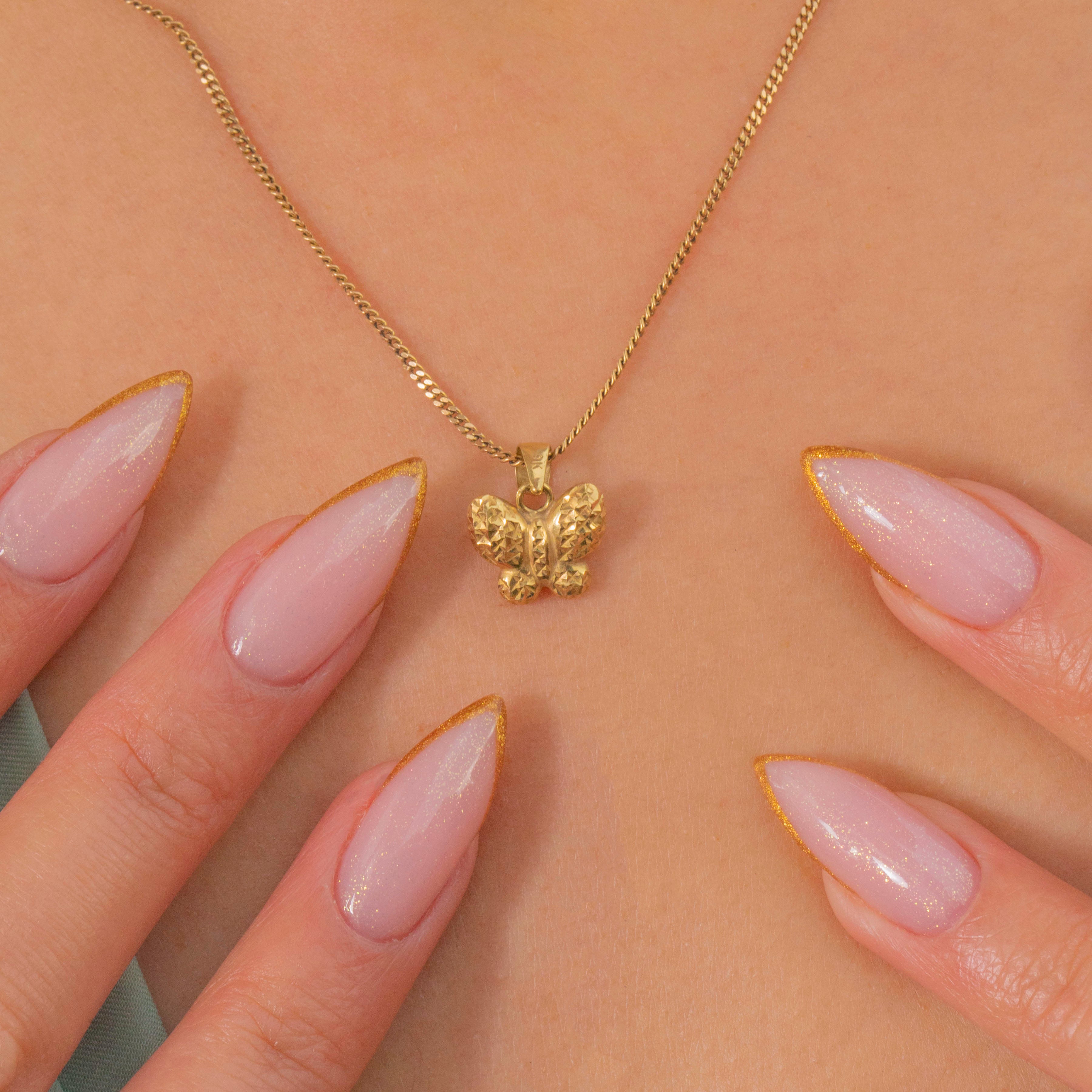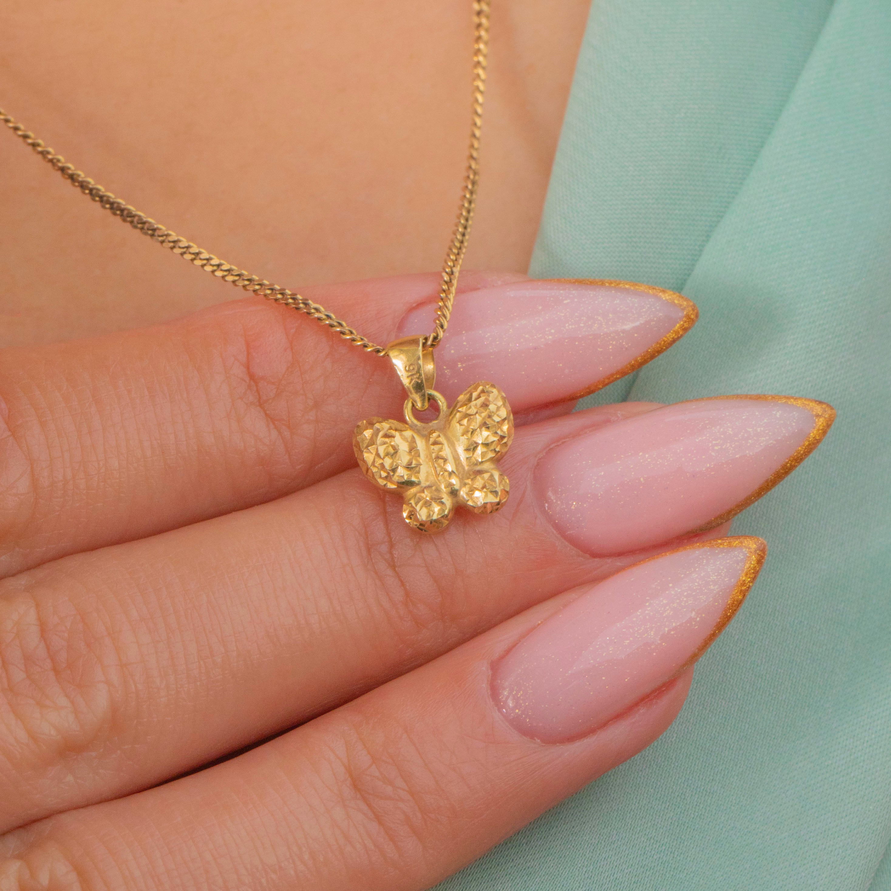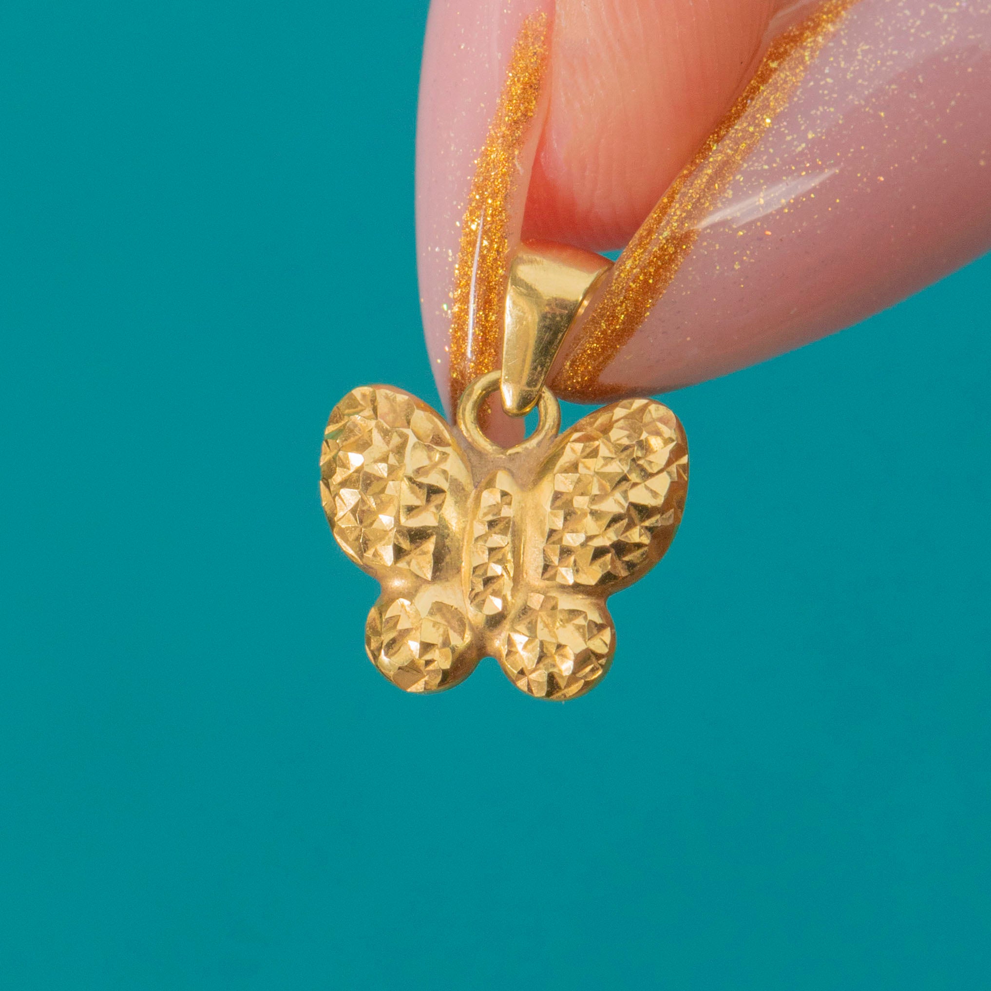 A vintage butterfly charm with a delicate hammered finish across its 9ct Gold body that catches the light beautifully. Its petite size and warm golden hue make it perfect for layering on a charm bracelet or necklace.