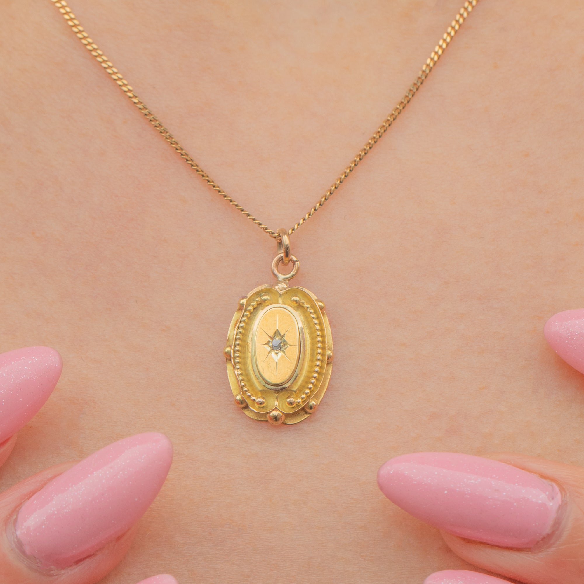 Add a touch of celestial allure to your outfit with this delightful Victorian 15ct Gold Diamond star-set charm! Brimming with Victorian character and centred by a dainty star-set Diamond, this antique pendant is the perfect treasure for everyday wear.