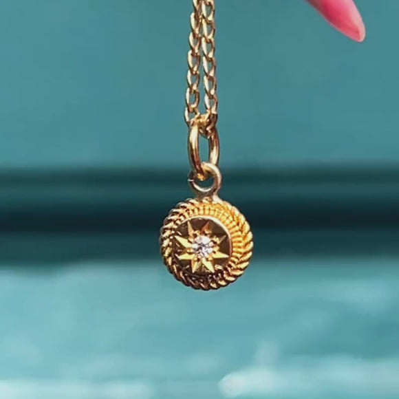 EXCELLENT. This antique 15ct Gold Etruscan revival Diamond star charm is in excellent condition. This treasure has little wear to note. The Diamond is secure in its setting and sparkles beautifully. The charm has a decorative rope border and a solid 18ct Gold jump ring so you can wear this piece with confidence! What was once likely a stick pin, this treasure has been beautifully converted into a highly wearable charm that you can enjoy on a daily basis.