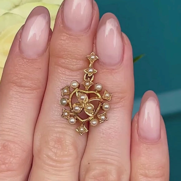 Victorian 15ct Gold Pearl Heart Motif Pendant