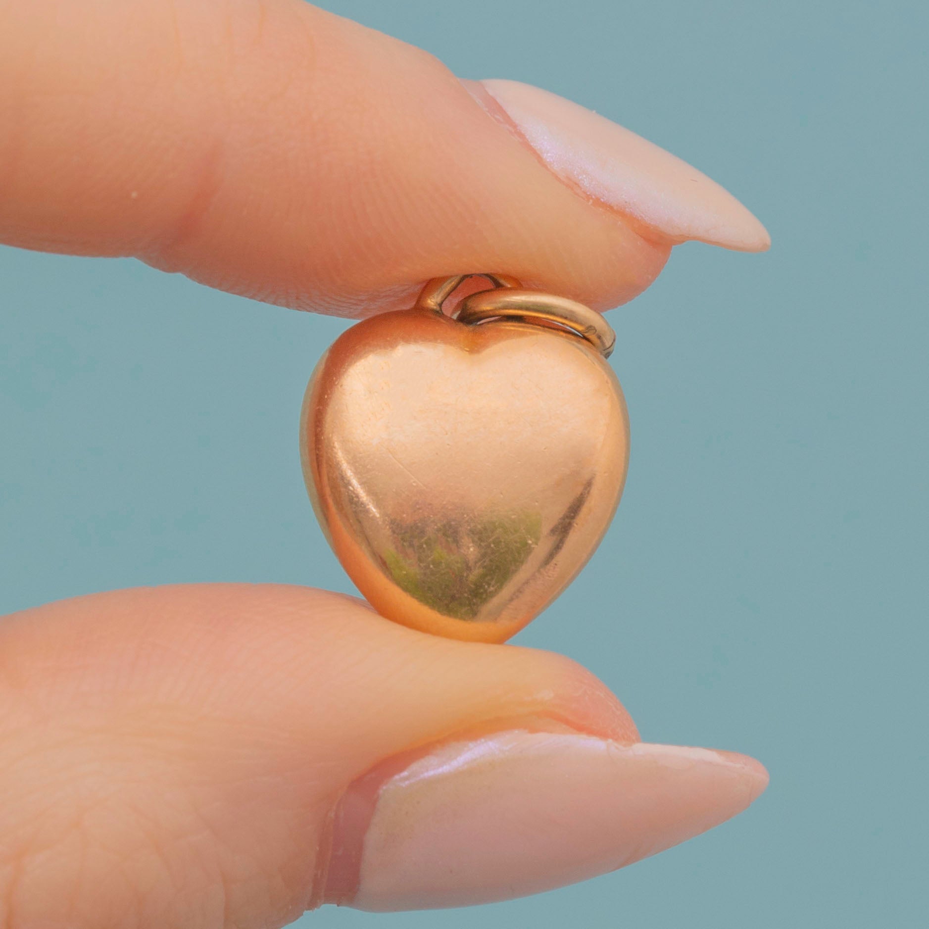 EXCELLENT. A wonderful Victorian 15ct Gold Pearl puffy heart pendant in excellent condition! The Gold is smooth, has a great shine and a soft pale rose tone. The Pearls are nestled snugly and secure within its setting, so you can wear this piece with the utmost confidence!