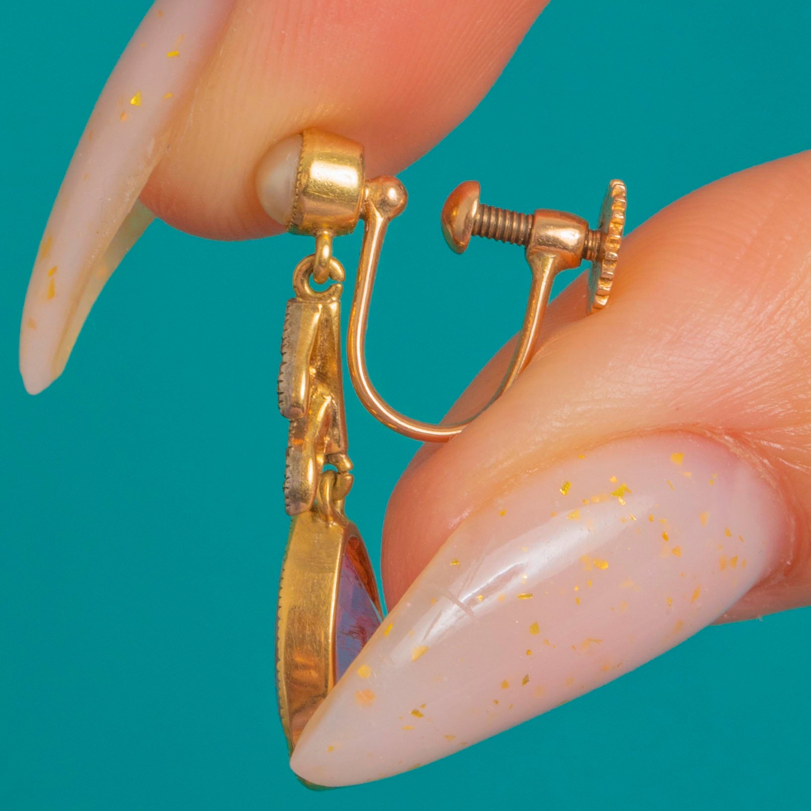 Victorian 15ct Gold Tourmaline Pearl Diamond Earrings, with Antique Box
