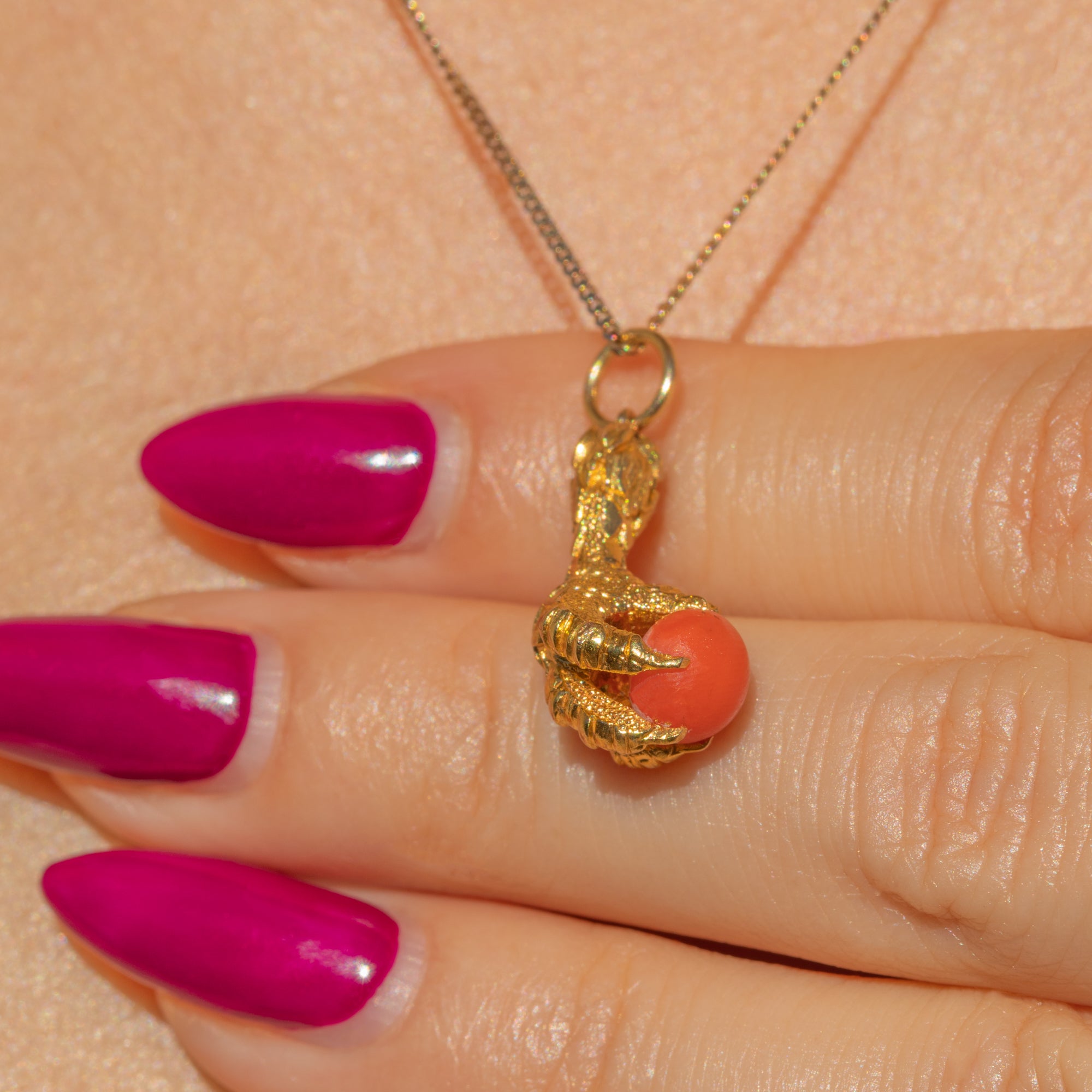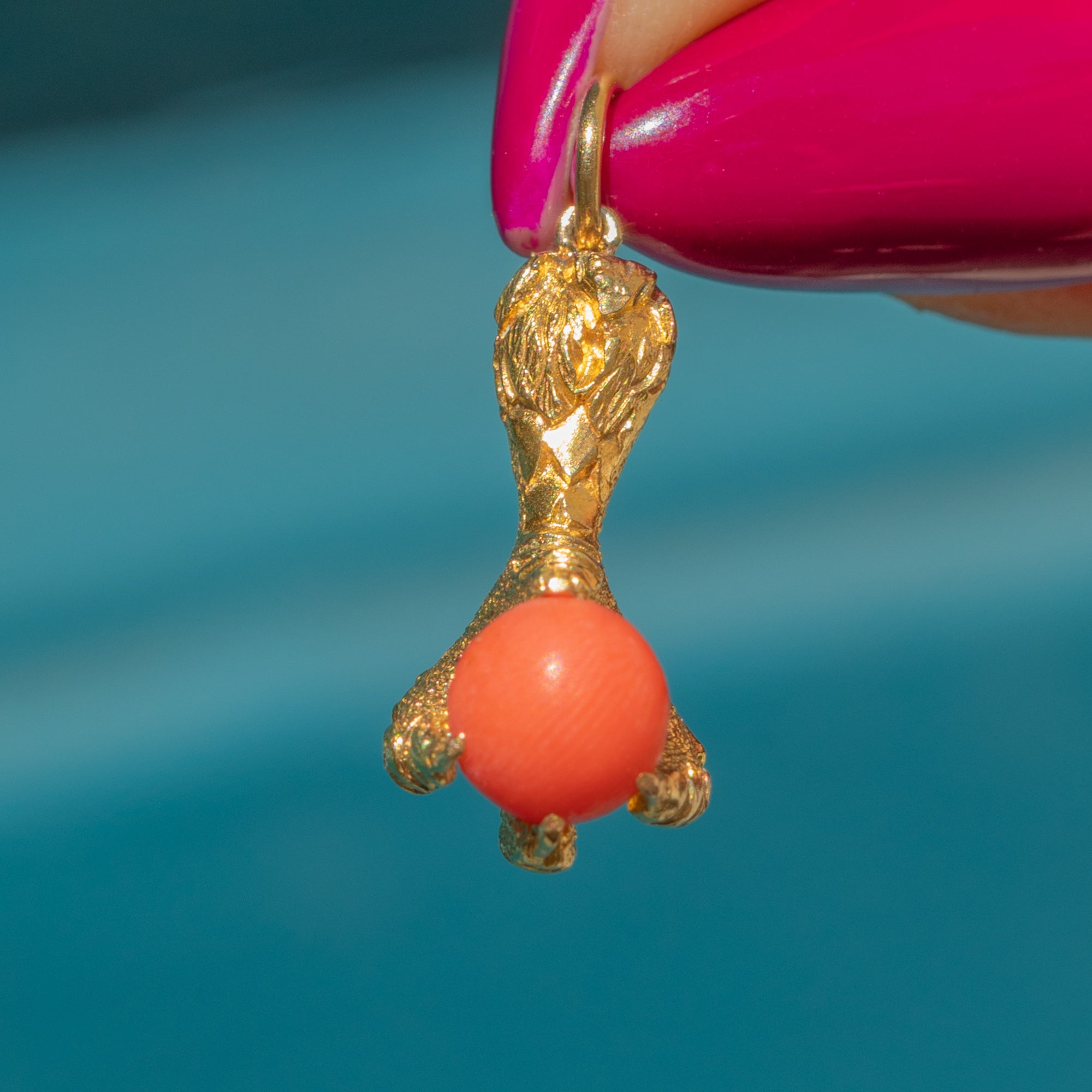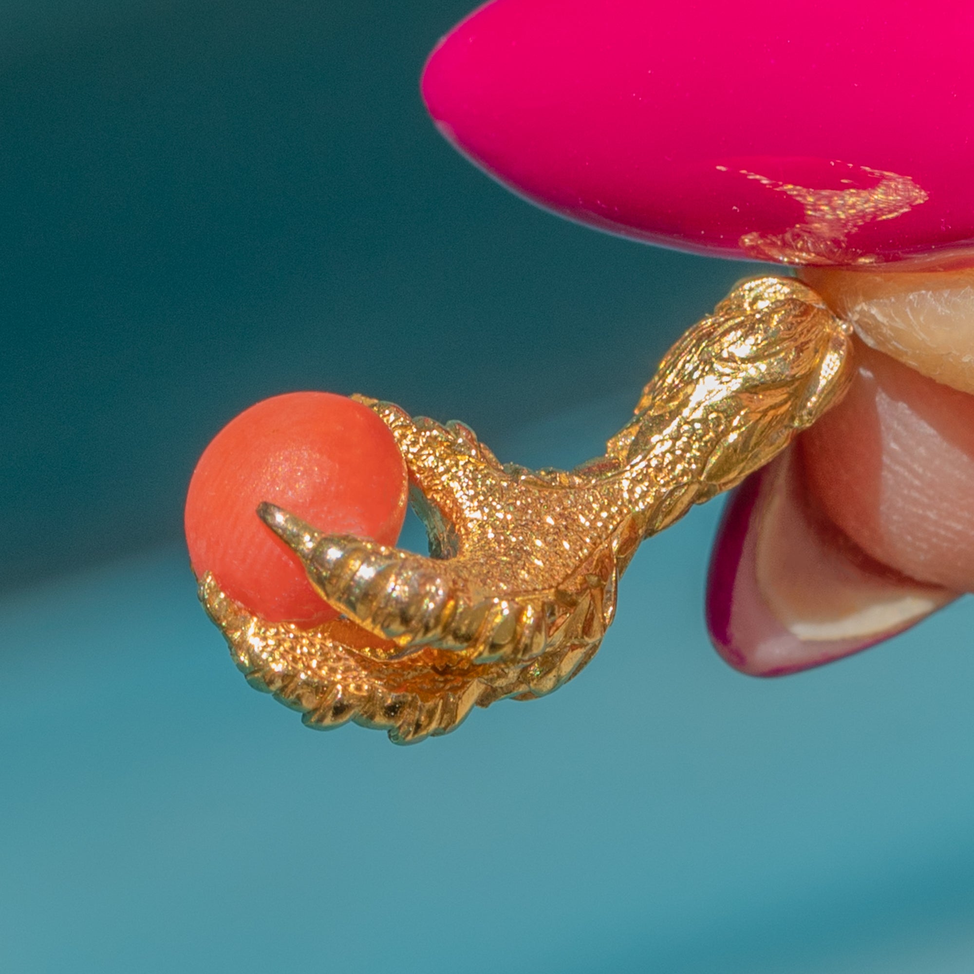 This eagle claw charm will set your jewellery collection apart from the crowd. Within the four claws of this charm lies a striking Coral, held by intricately formed 18ct Gold, allowing you to admire the pendant from every angle.
