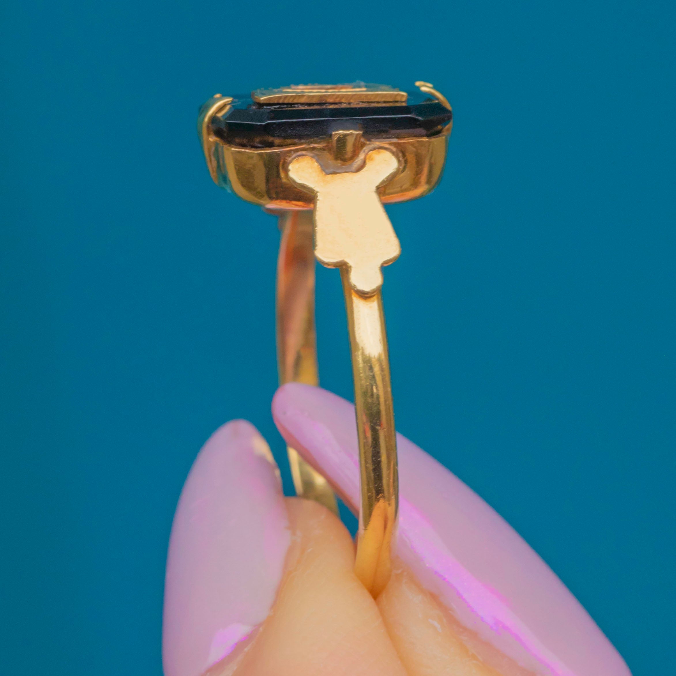MATERIALS: Tests as 18ct Gold, Onyx.