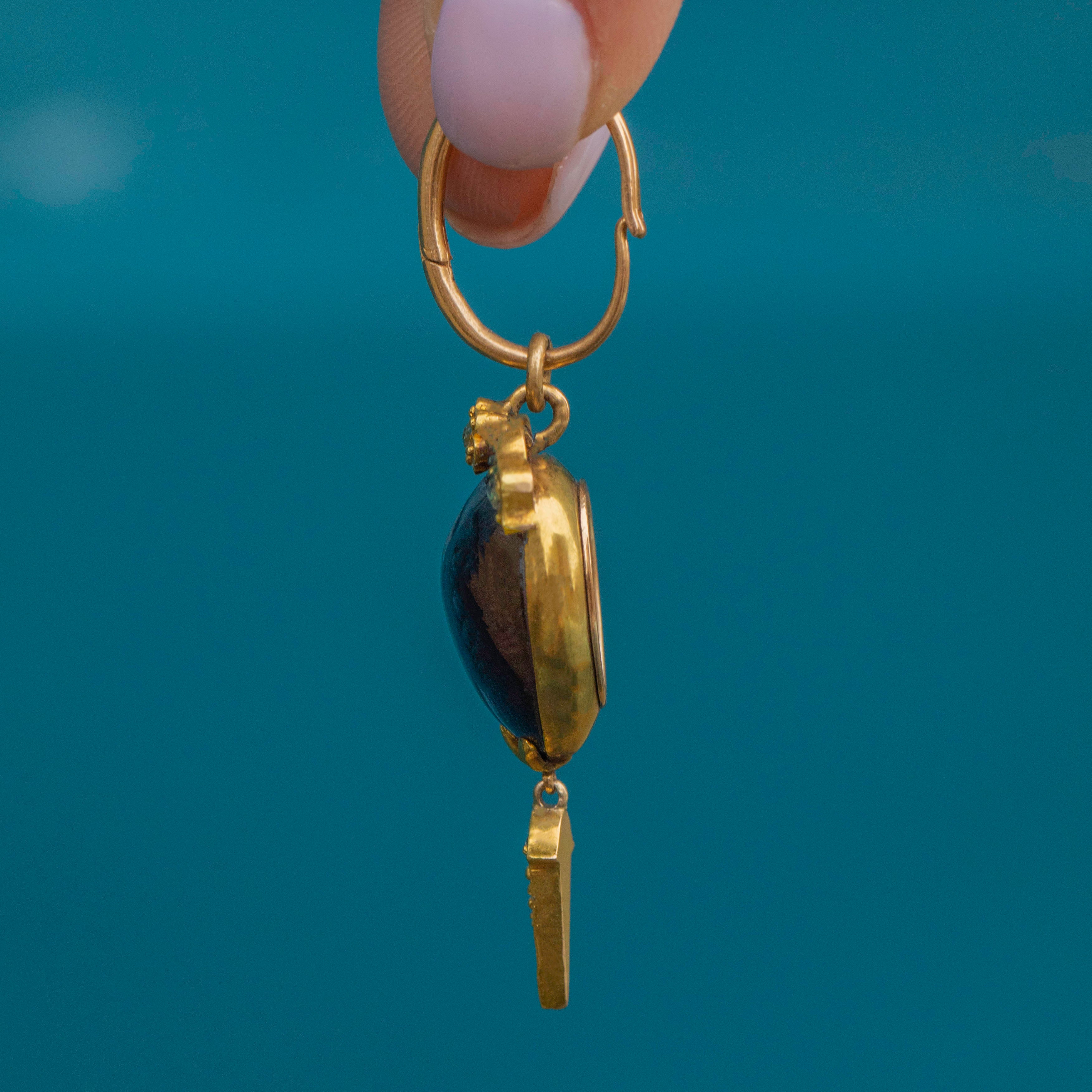 Their Garnets are crowned with sweet floral details, embellished with green foiled rose-cut Diamonds providing a charismatic sparkle. Suspending a splendorous 18ct Gold torpedo drop, these Gold Victorian earrings provide wonderful fluidity with every swish and sway.