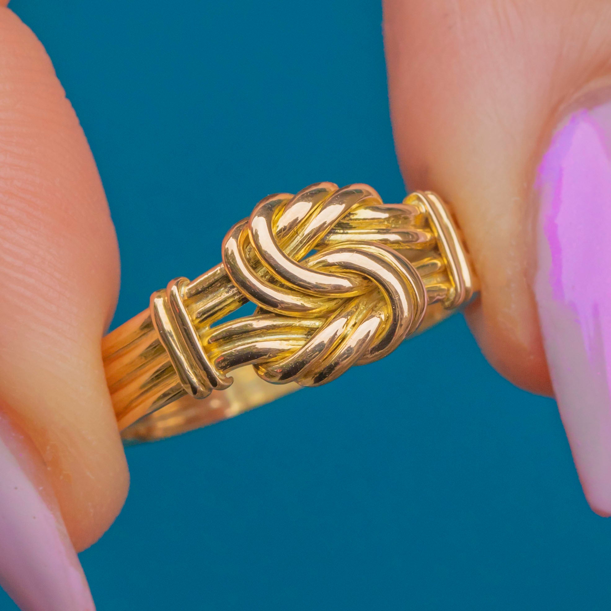 This elegant Victorian knot ring is crafted in rich 18ct Gold, symbolising eternal love and unity. The knot motif, timeless and romantic, is beautifully executed, with soft curves and a bright, buttery finish that glows with warmth and history.