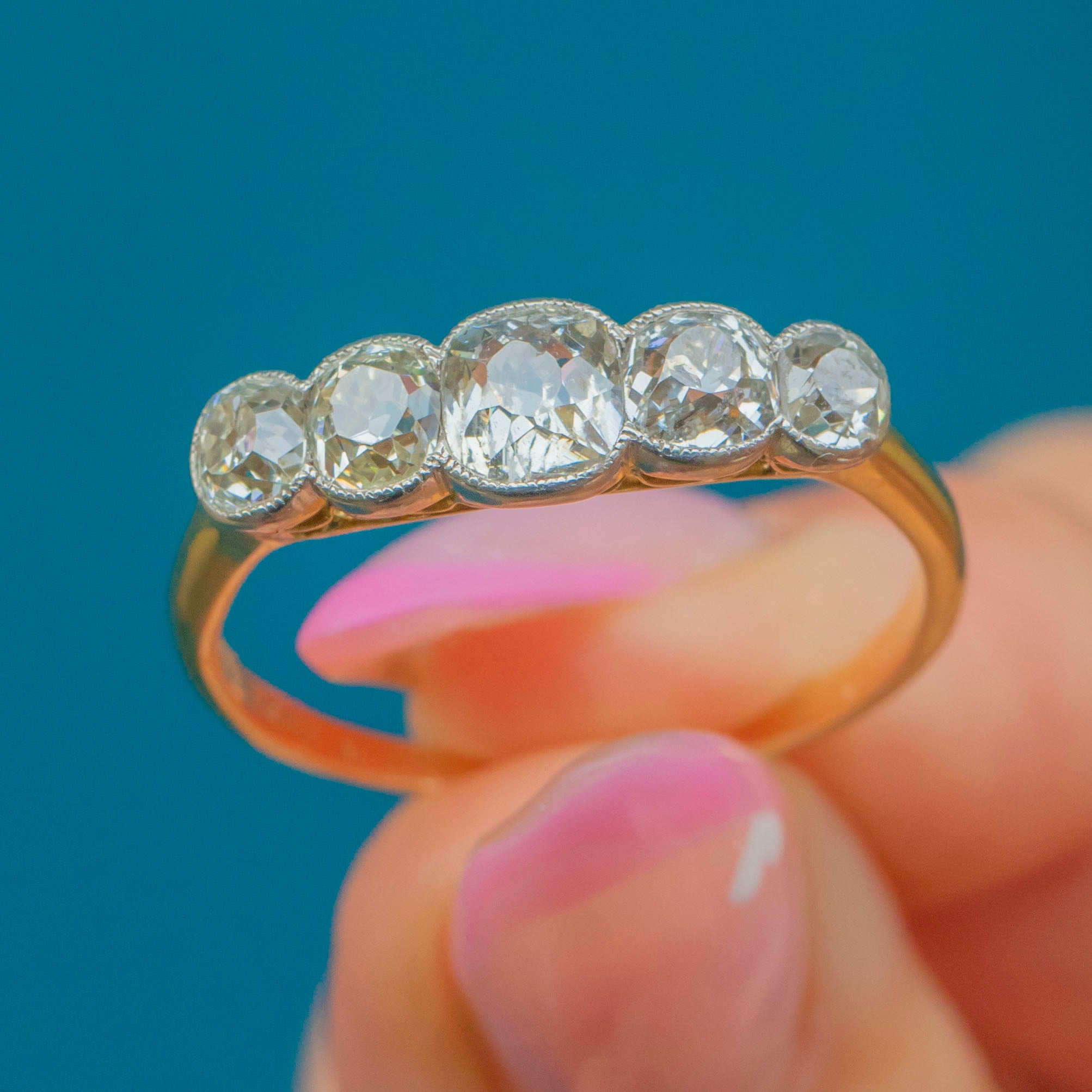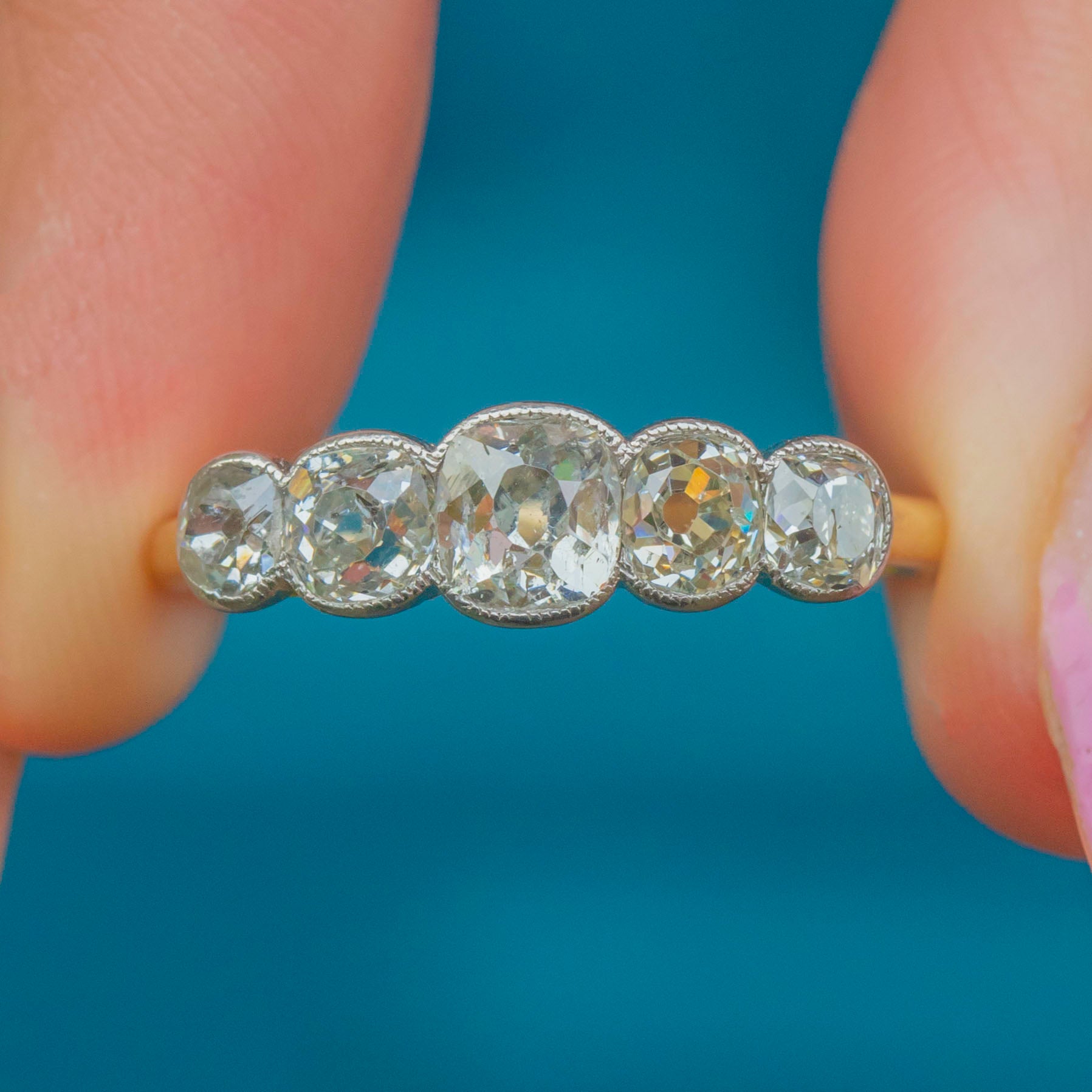 1.70ct Victorian 18ct Gold Old Mine Cut Diamond Five-Stone Ring
