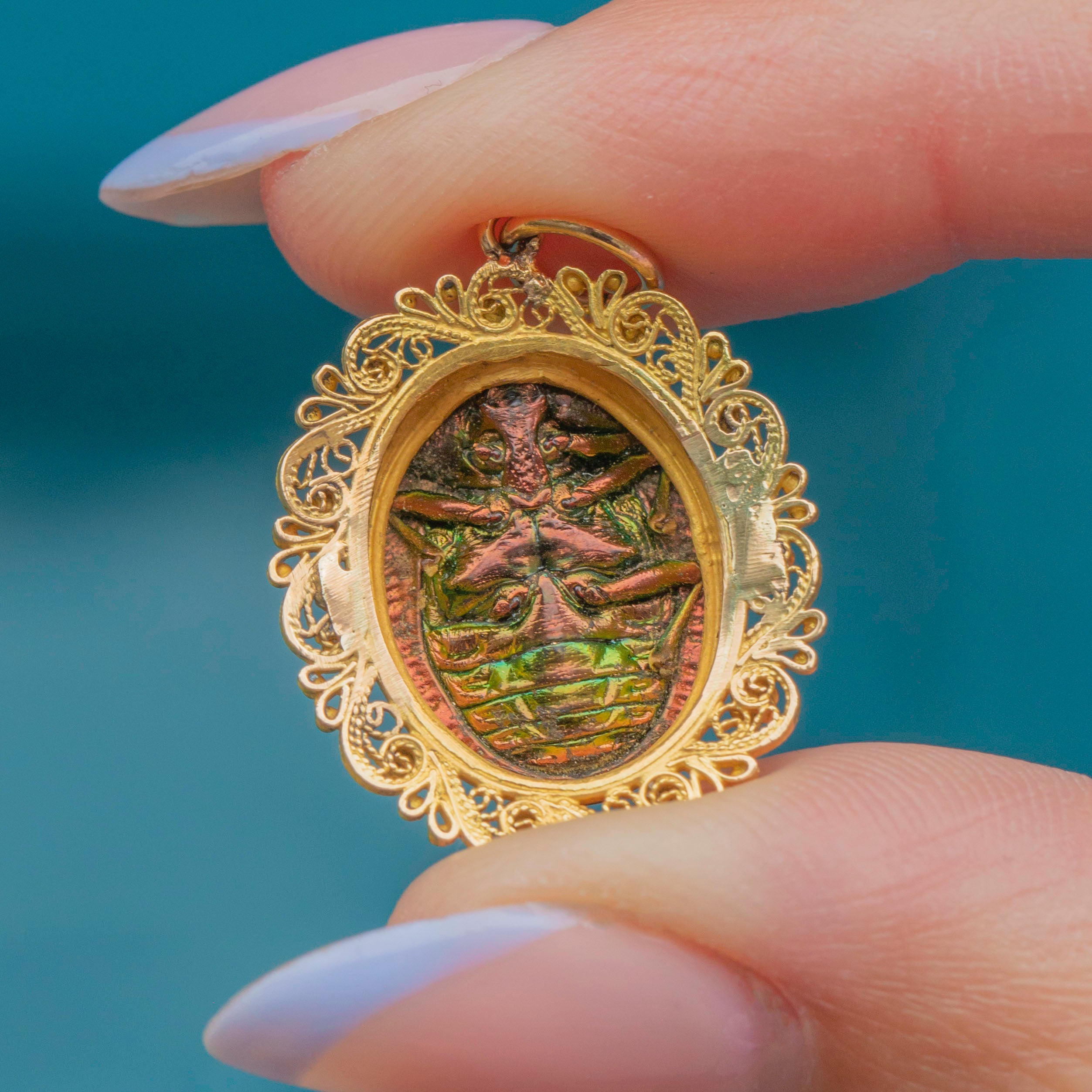 Victorian 18ct Gold Scarab Beetle Filigree Pendant
