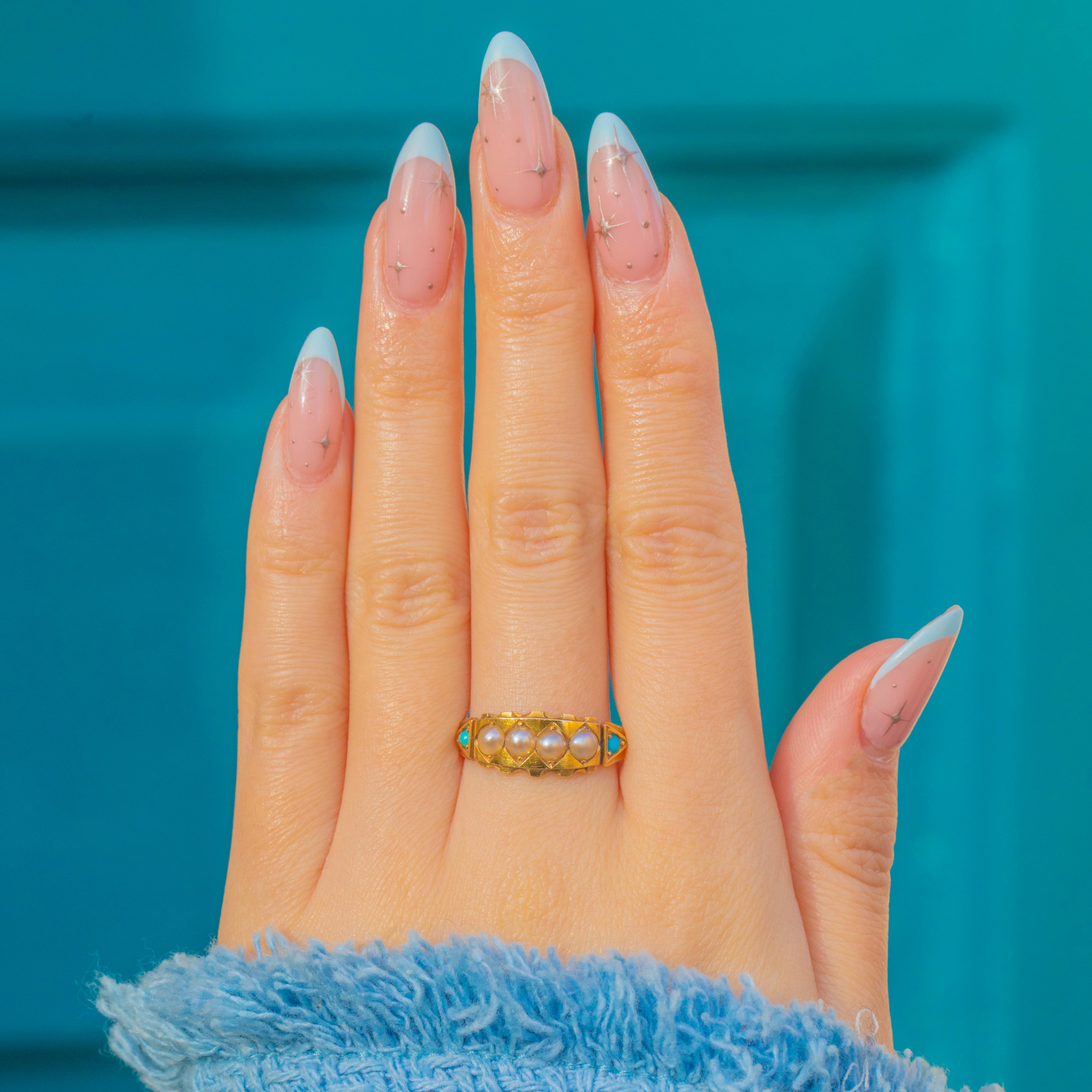 Victorian 18ct Gold Turquoise Pearl Stacking Ring c.1881