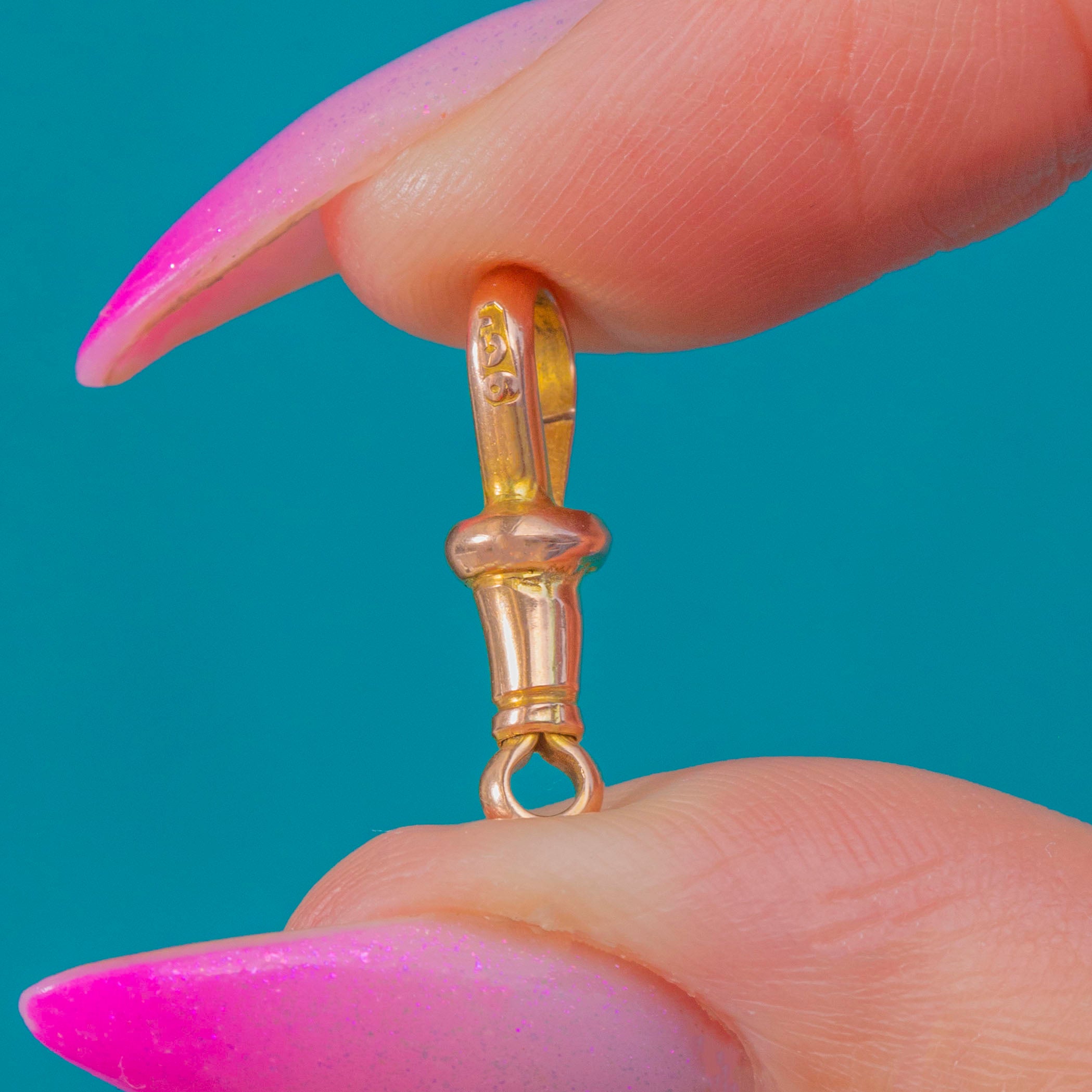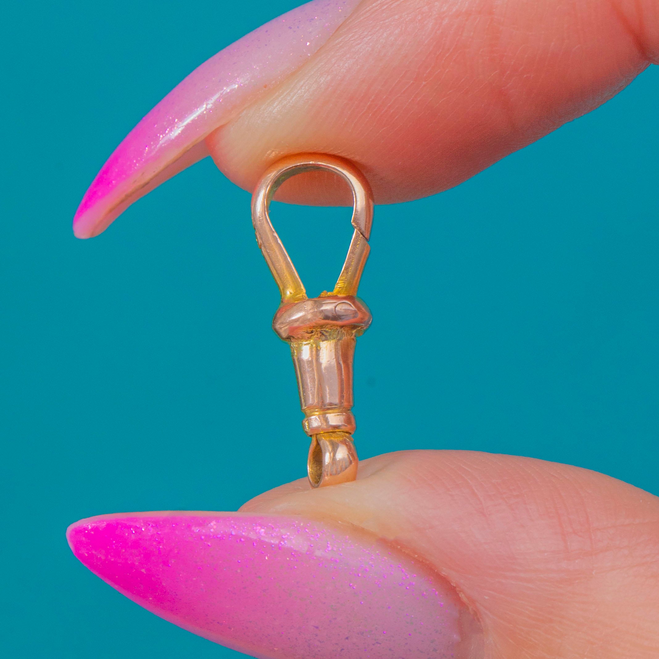 A petite Victorian 9ct Gold dog clip, beautifully polished with that soft, honeyed glow we all adore. Its sleek, utilitarian silhouette and subtle collar detailing make it an elegant essential you’ll reach for time and again.