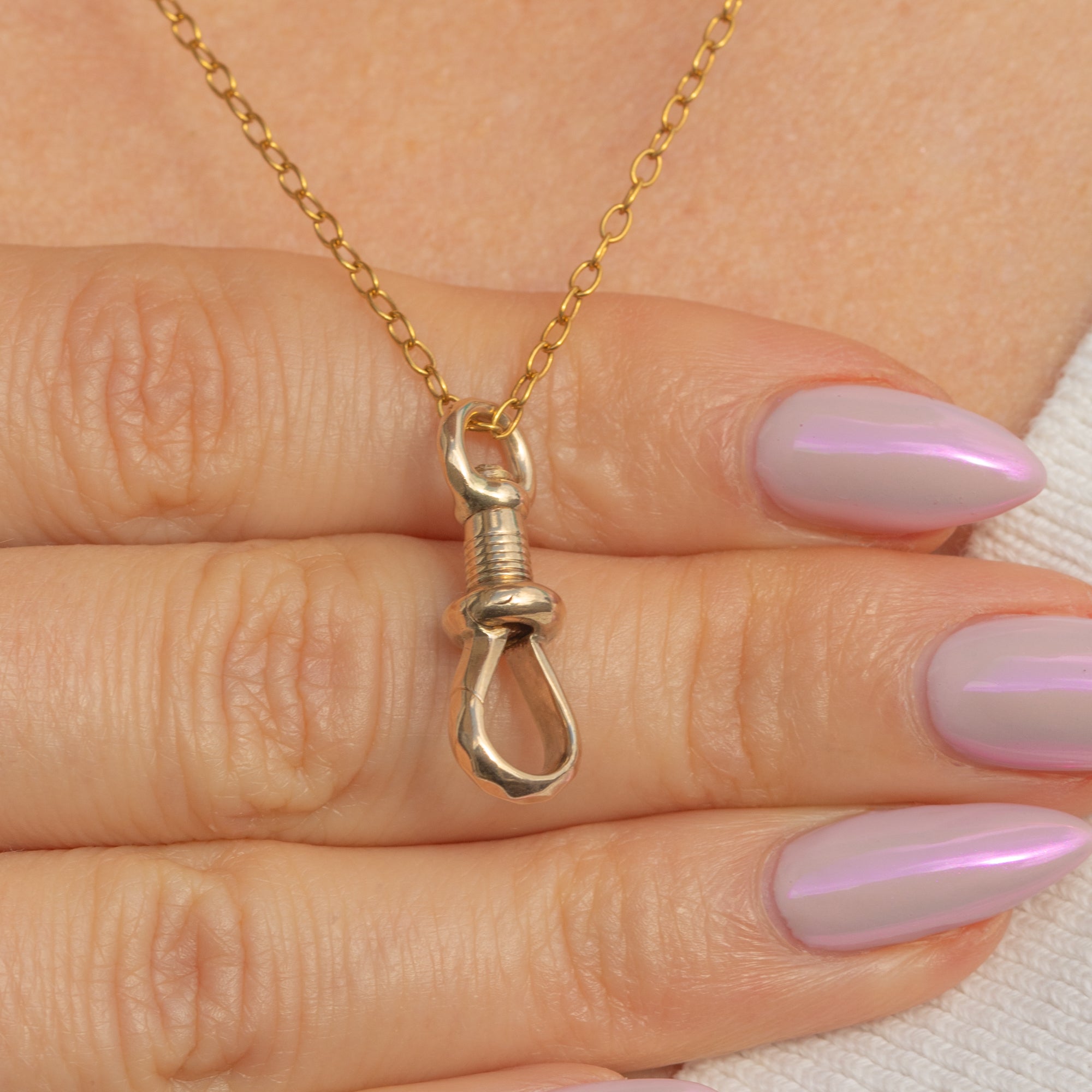 Originally intended for Albert chains and watch accessories, today it’s the perfect piece for modern layering. Whether worn solo as a pendant or used to connect charms and chains, this timeless clasp brings instant antique authenticity to any jewellery look.