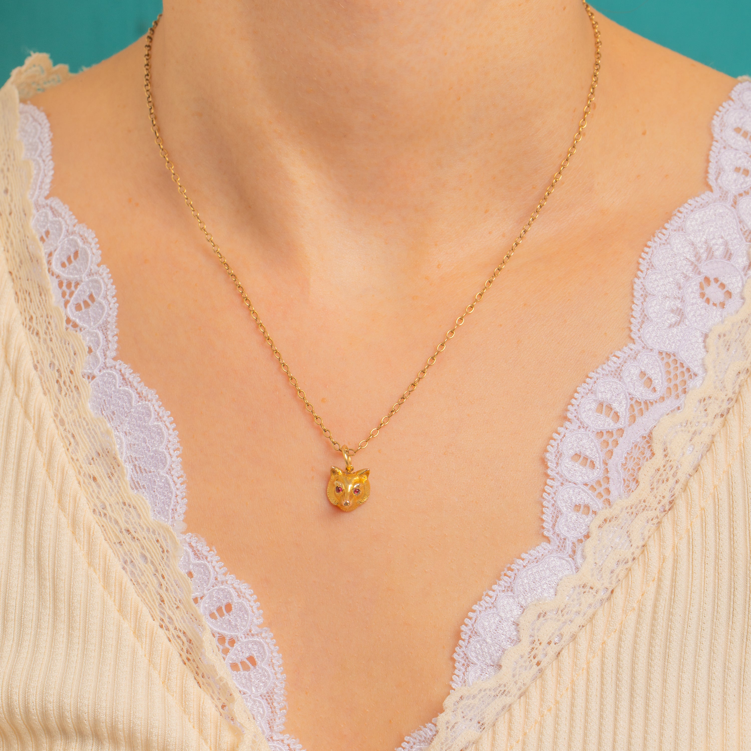 A delightful Victorian fox charm rendered in warm 9ct Gold, its sculptural three‑dimensional head finely textured to suggest soft fur. Two vivid red Spinel eyes bring this characterful creature to life, lending a subtle flash of colour to a petite, wearable piece that layers beautifully and feels wonderfully talismanic.