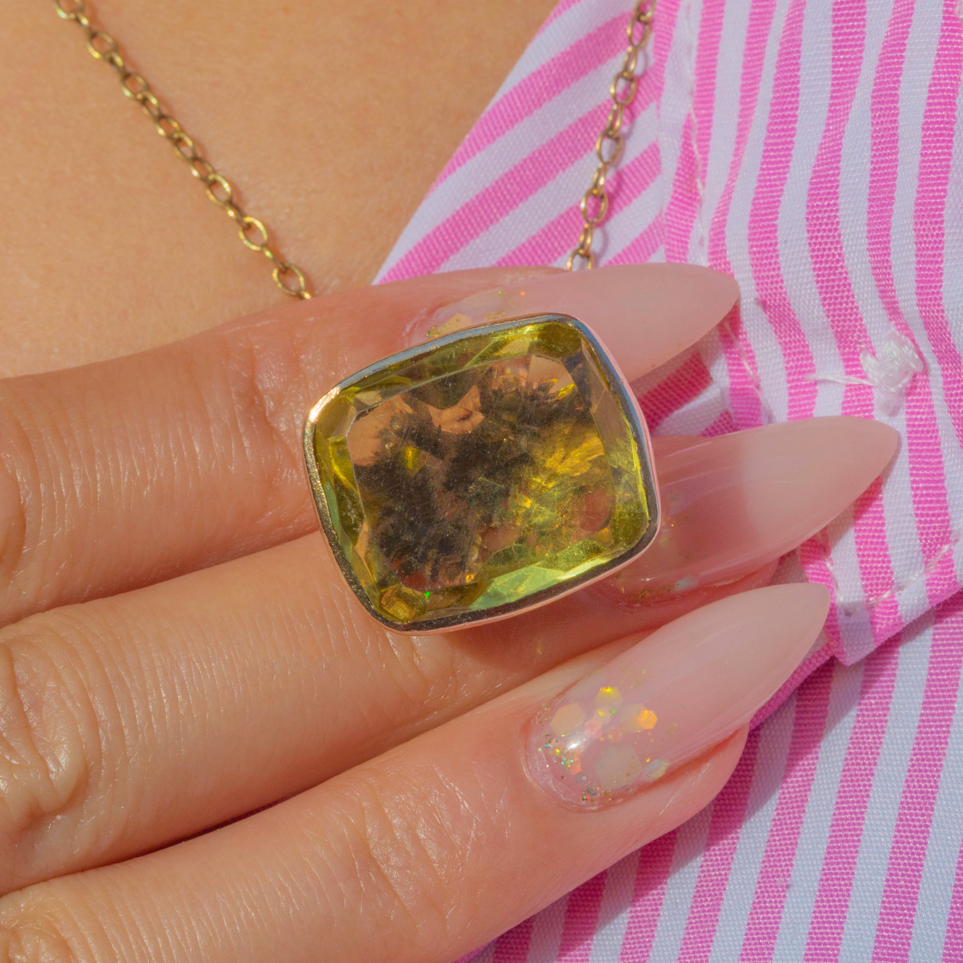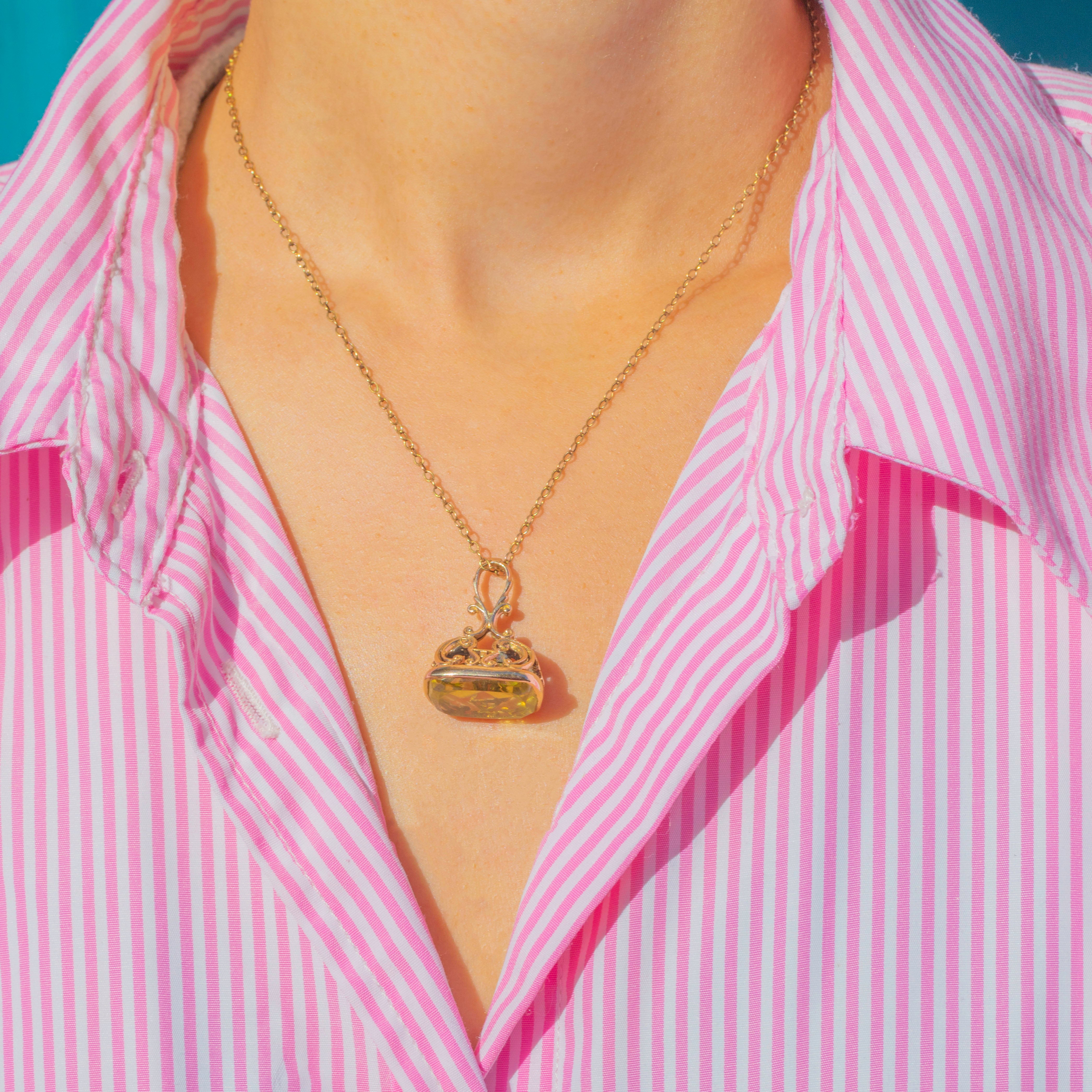 Originally designed as a watch fob, it now makes a striking pendant, full of antique character and colour.