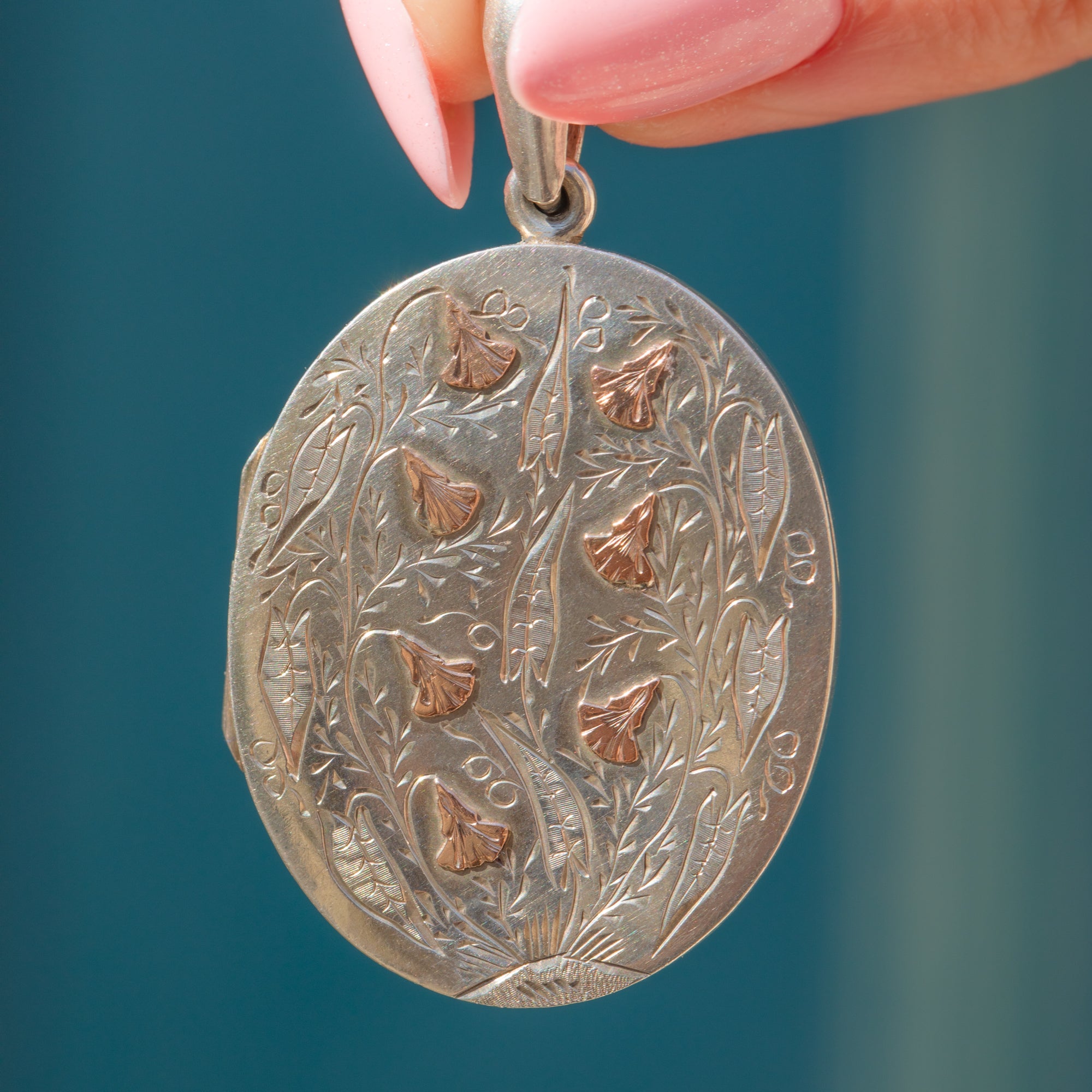 Victorian Aesthetic Silver & 9ct Gold Flower Locket, c.1881
