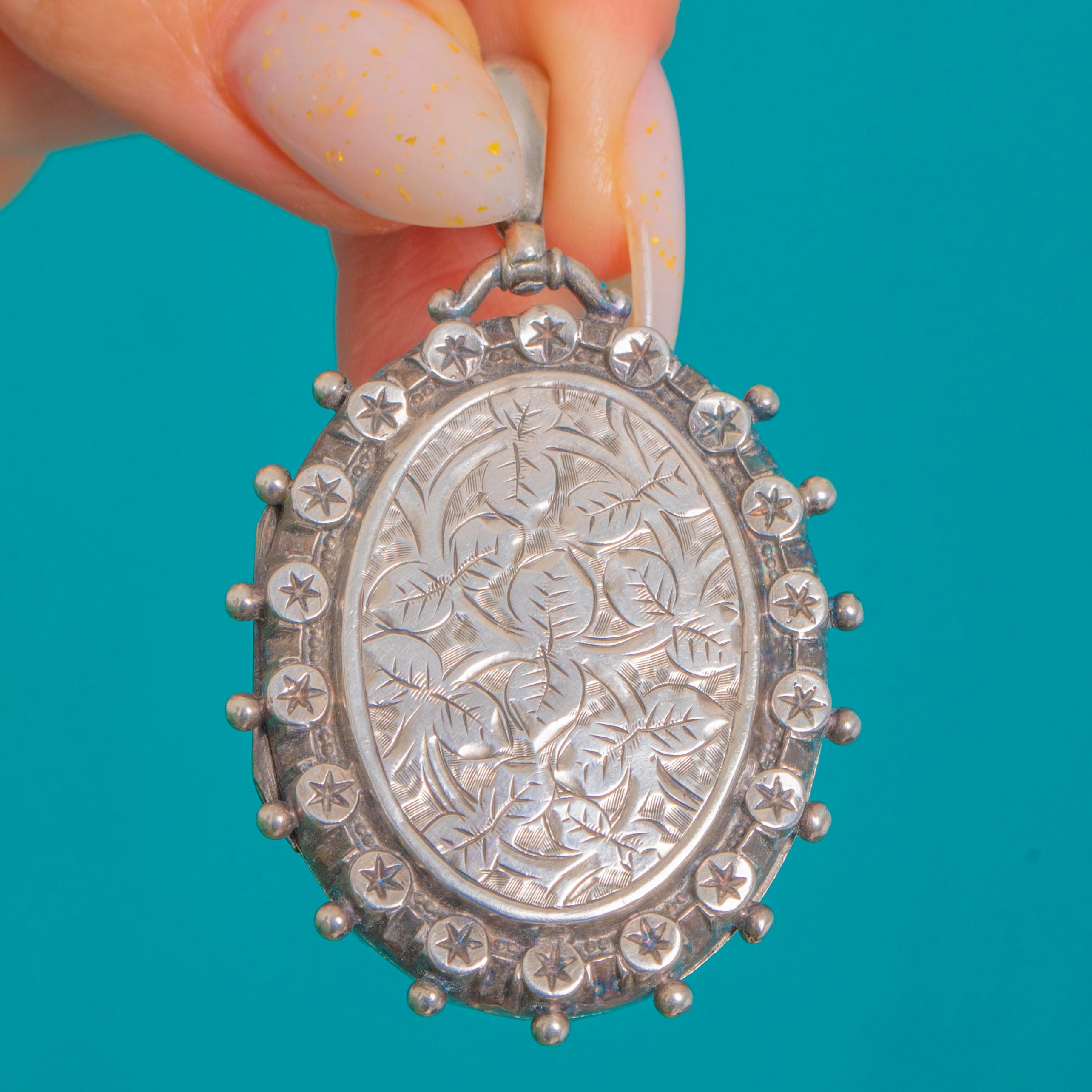 Victorian Aesthetic Silver Locket Stars & Beaded Edge, c.1884