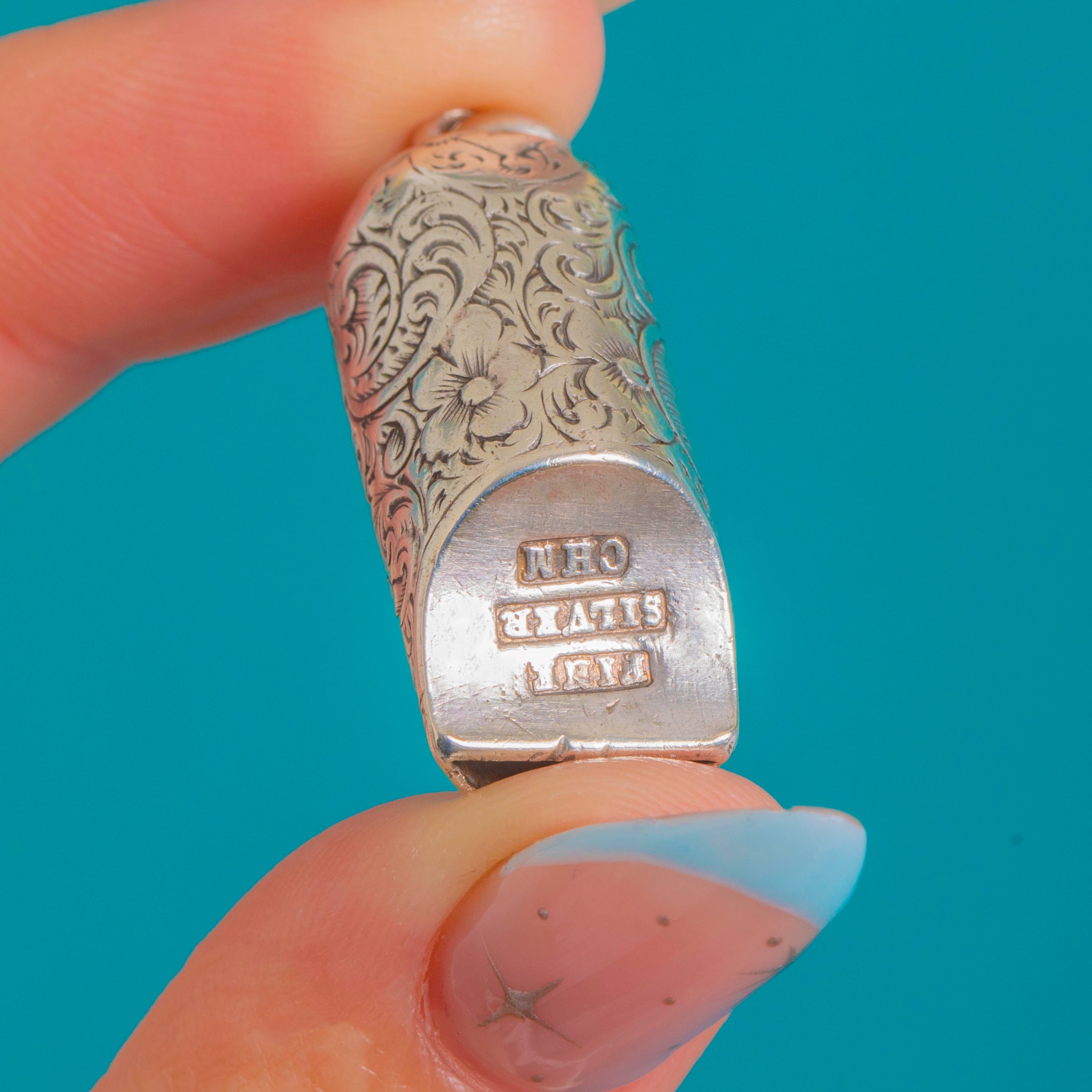 Victorian Fine Silver Engraved Whistle Pendant