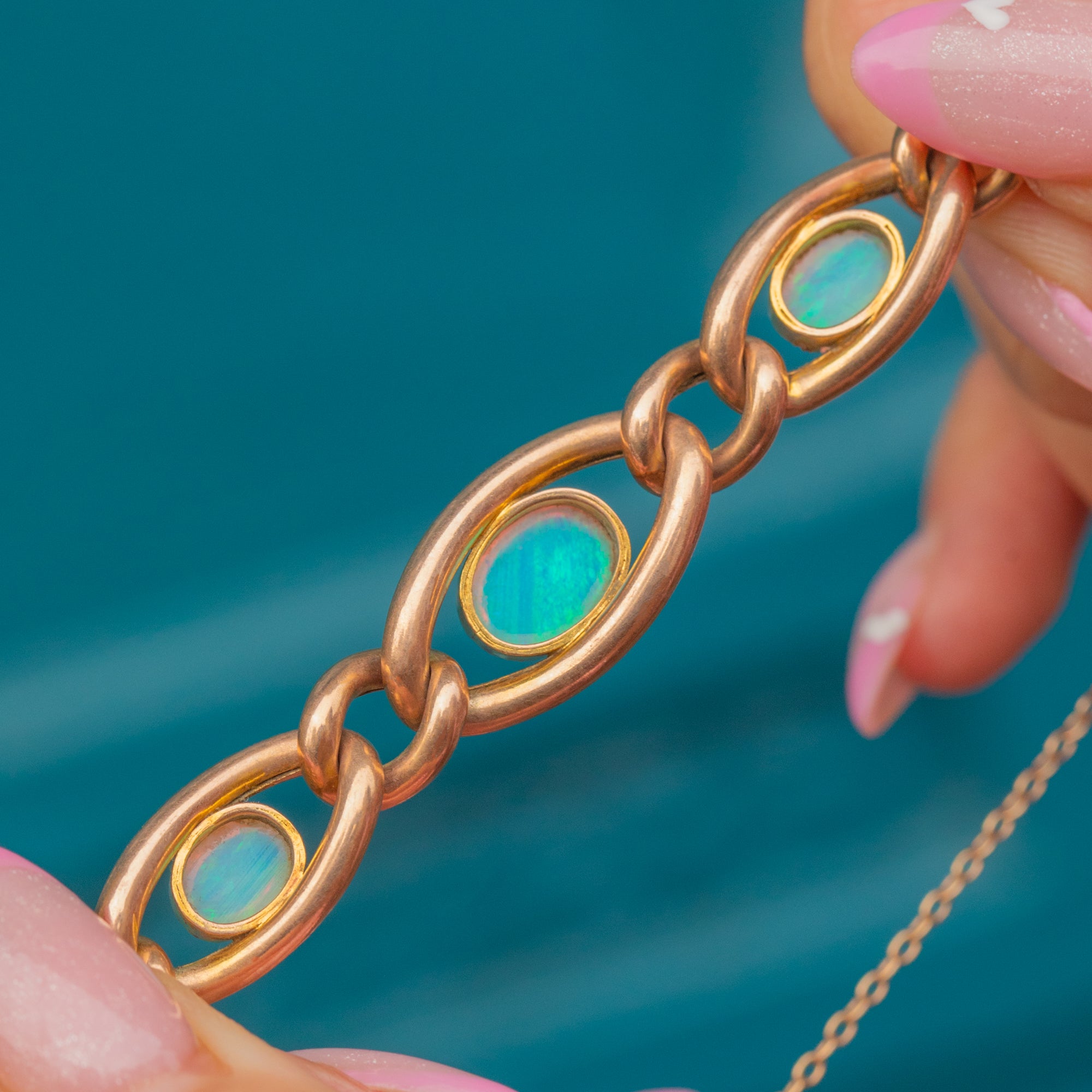 A captivating example of late 19th-century design, this antique Opal bracelet combines elegance and craftsmanship in equal measure — a timeless statement of Victorian opulence and charm.