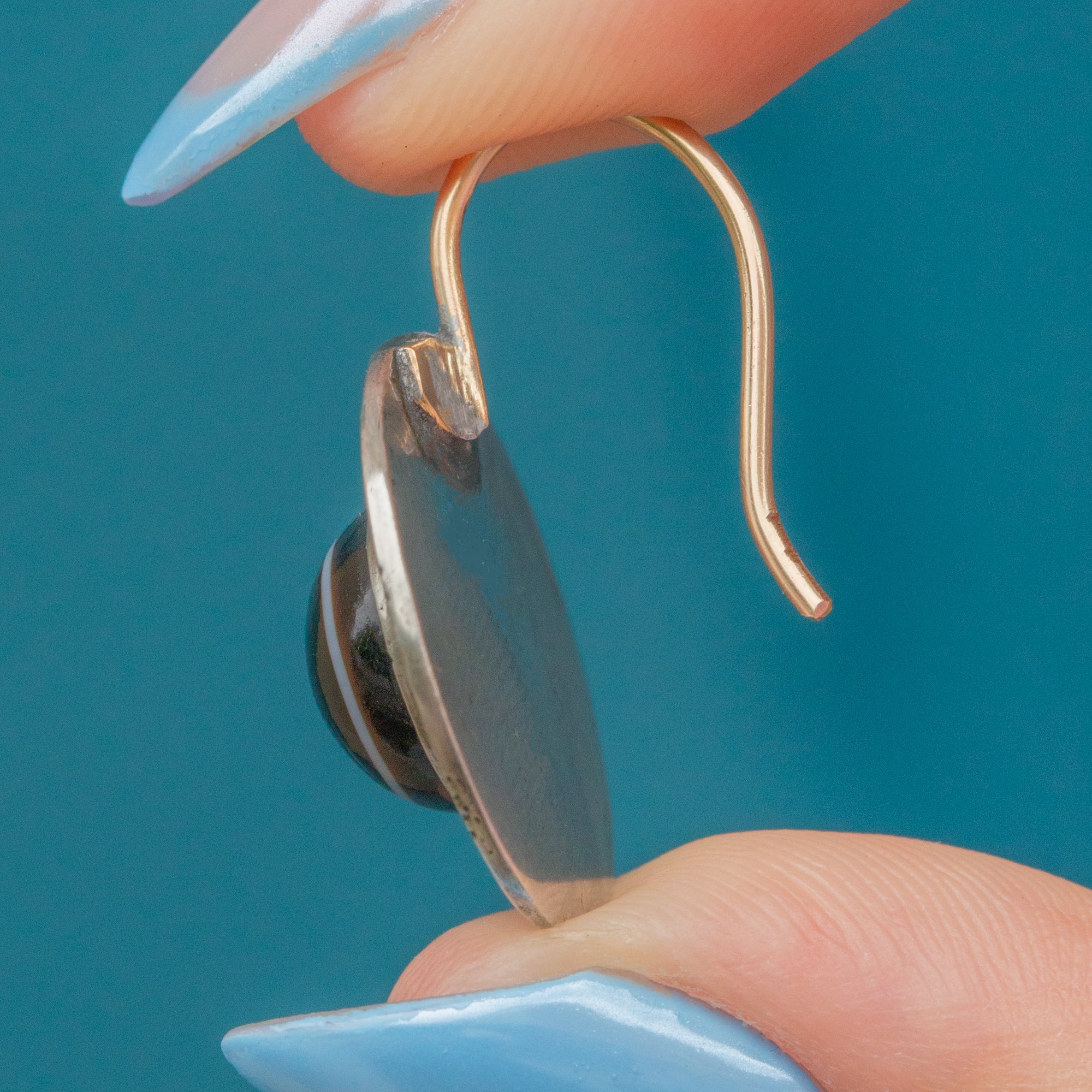 MATERIALS: Tests as Sterling Silver, 9ct Gold hooks, Banded Agate.