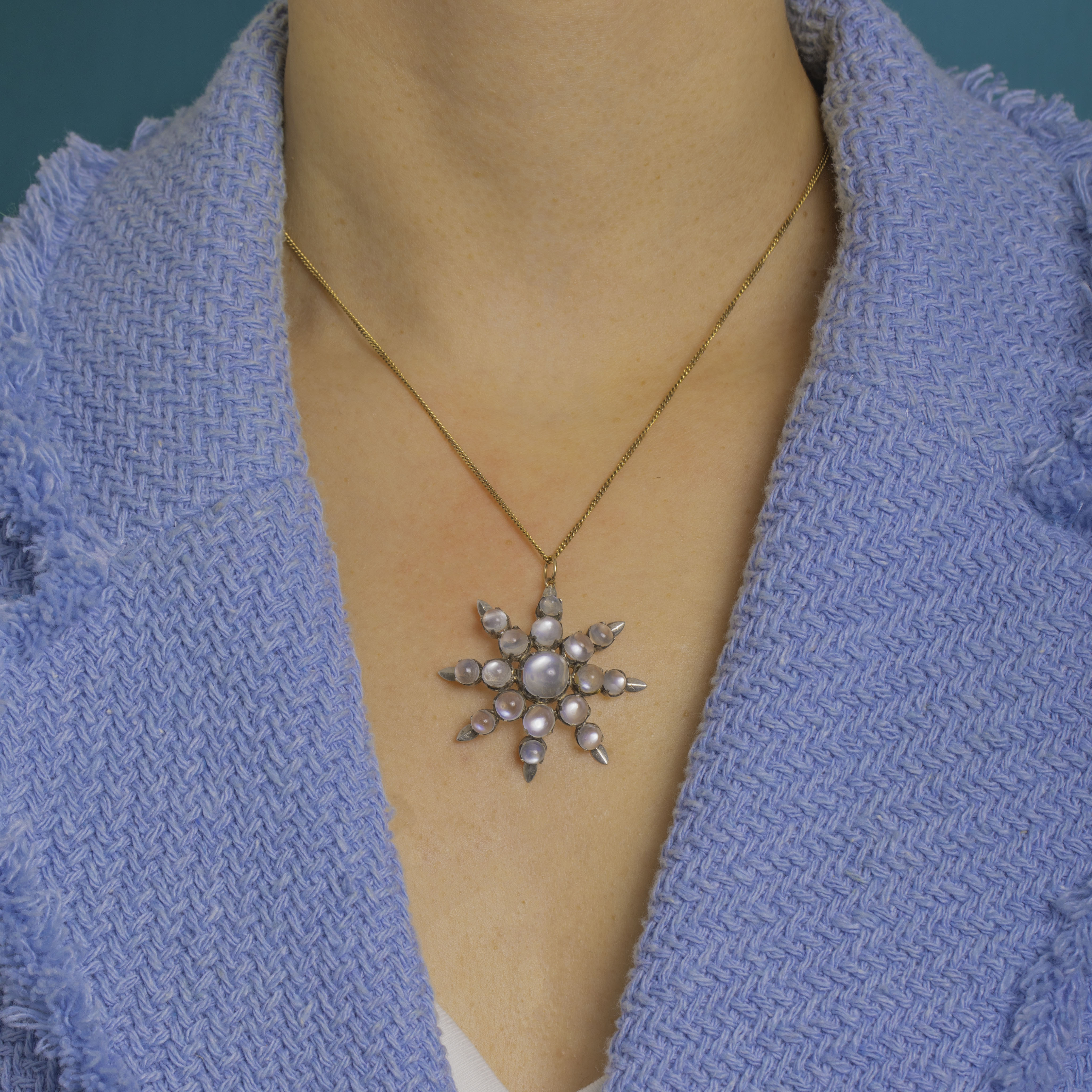 Victorian Silver Moonstone Star Pendant, 3.95ct, c.1880