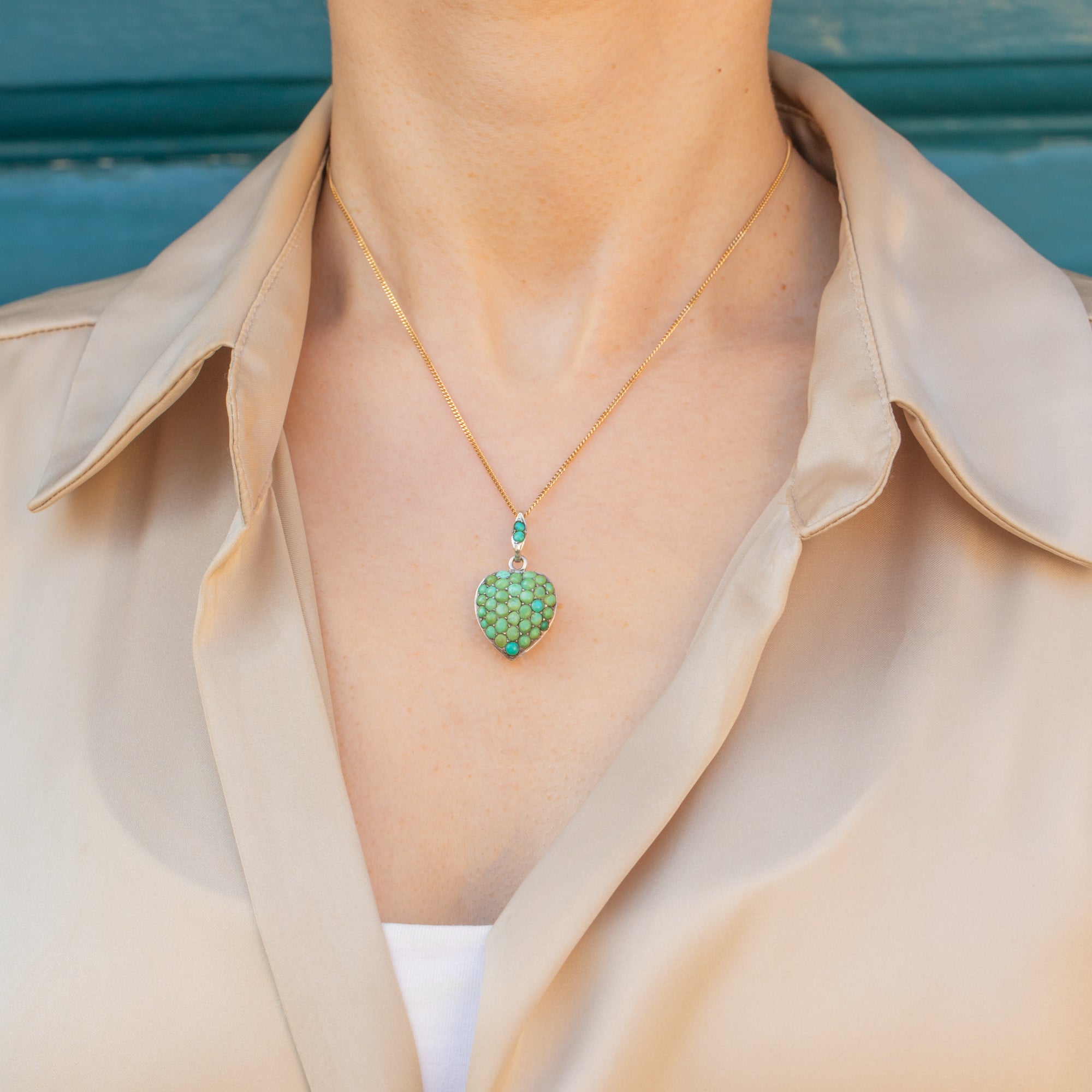 Simply suspend this antique Turquoise pendant from a chunky chain to add a refreshing pop of colour to your outfit!