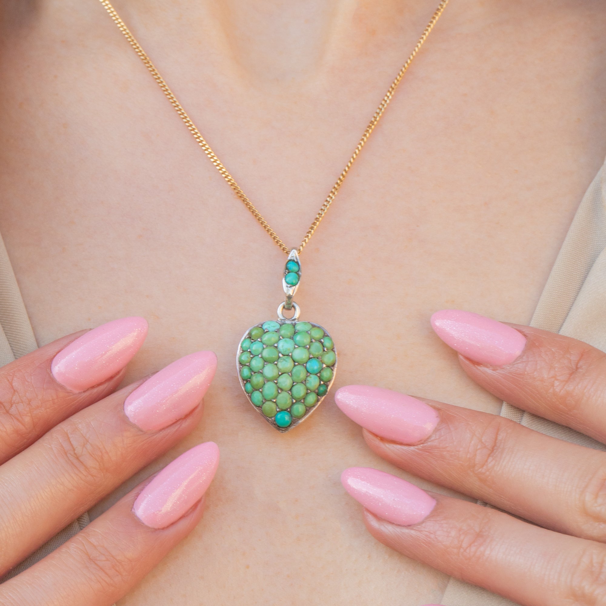 An adorable Victorian Silver Turquoise pavé heart pendant for your repertoire!