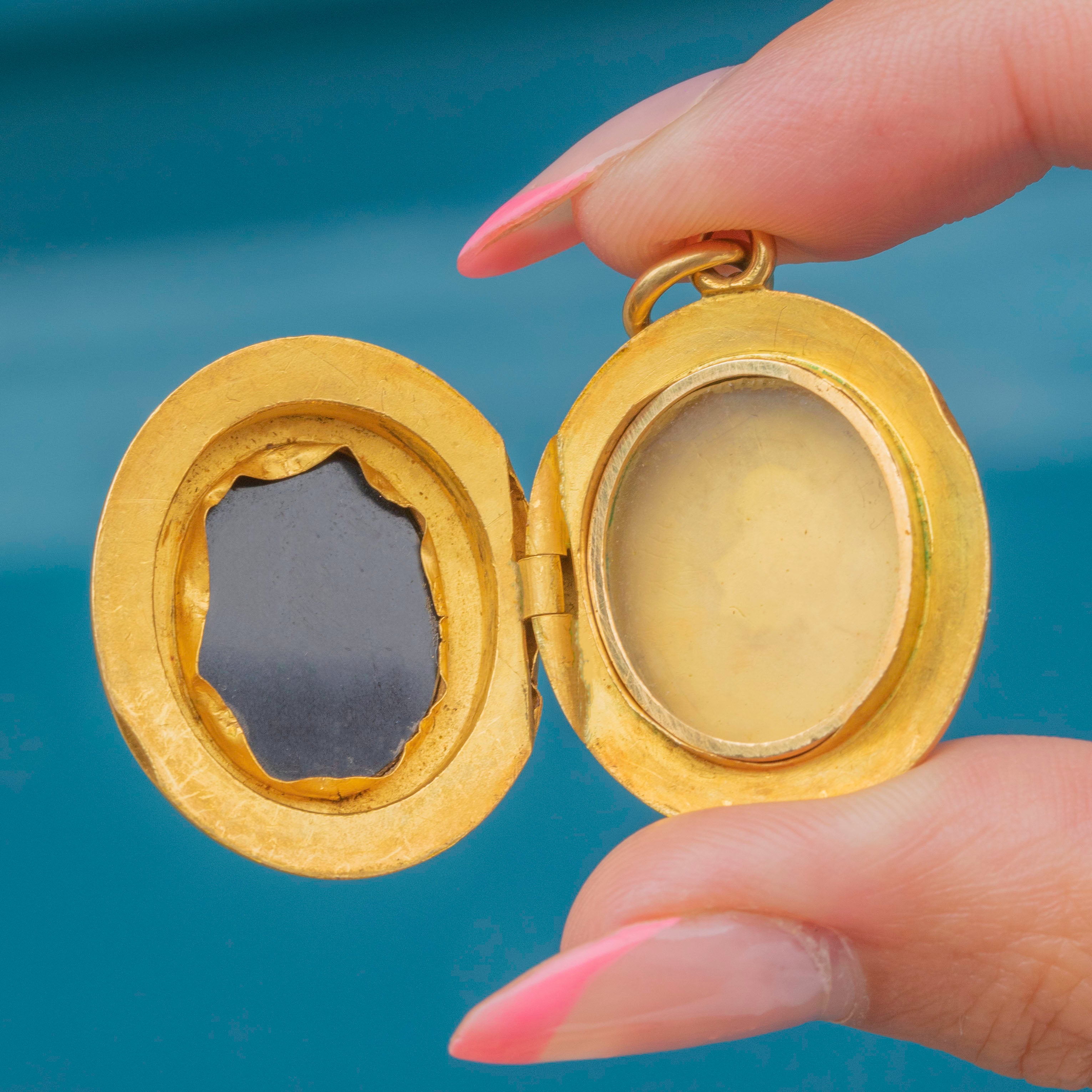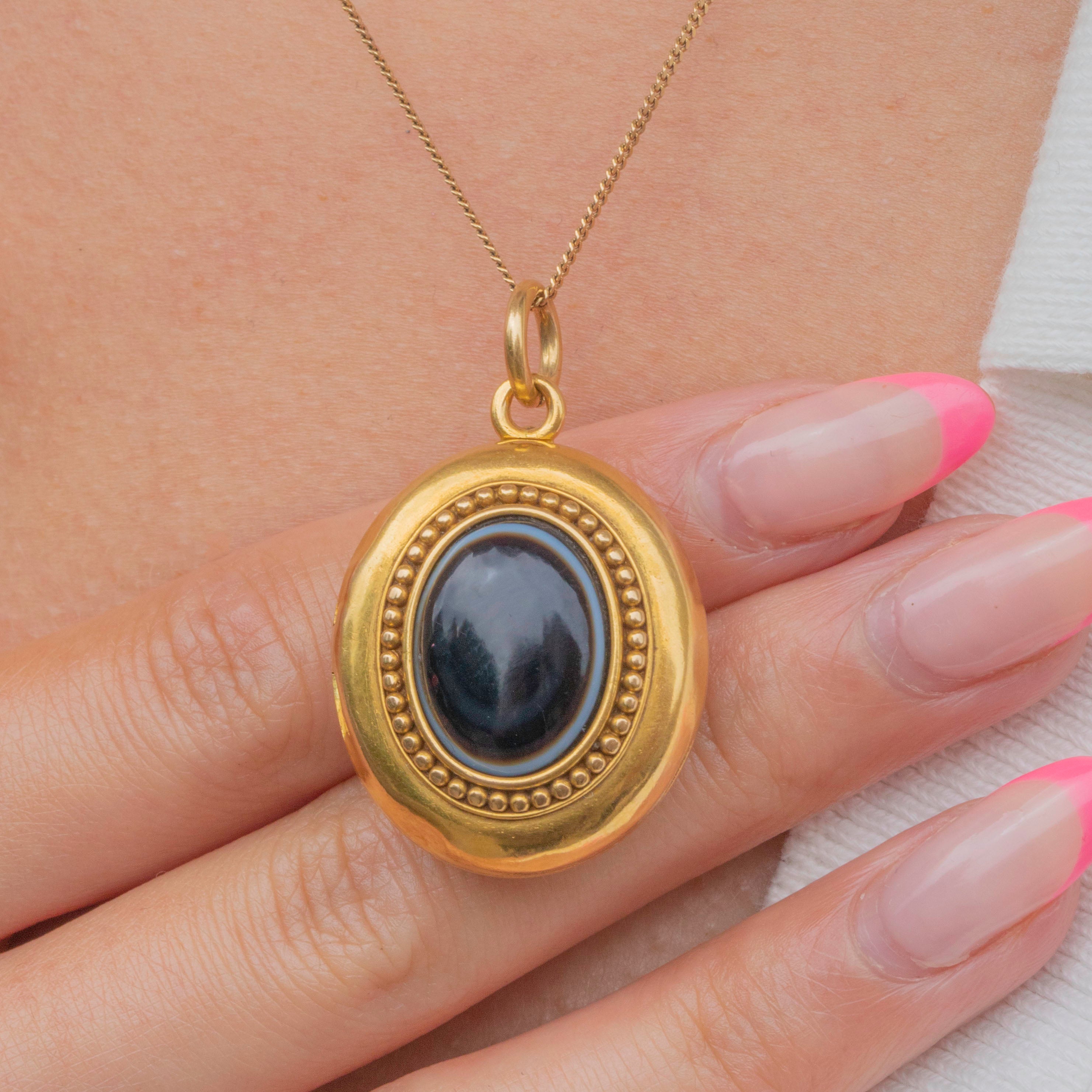 This sumptuous Victorian solid 18ct Gold Banded Agate anchor locket will make the perfect abode for your most cherished photograph! Crafted from richly saturated, solid 18ct Gold with a decadent satin finish, this antique locket is a chubby delight and feels satisfying resting against the chest.