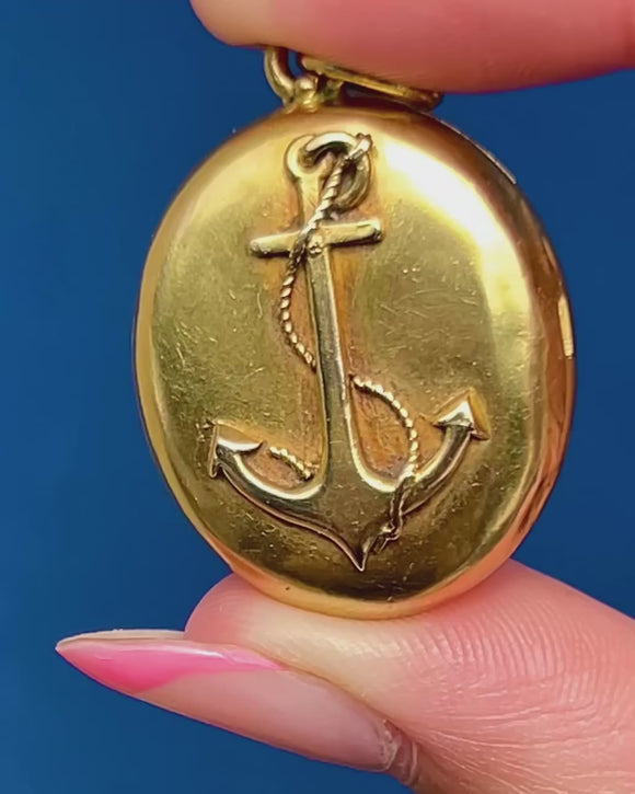 Victorian Solid 18ct Gold Banded Agate Anchor Locket
