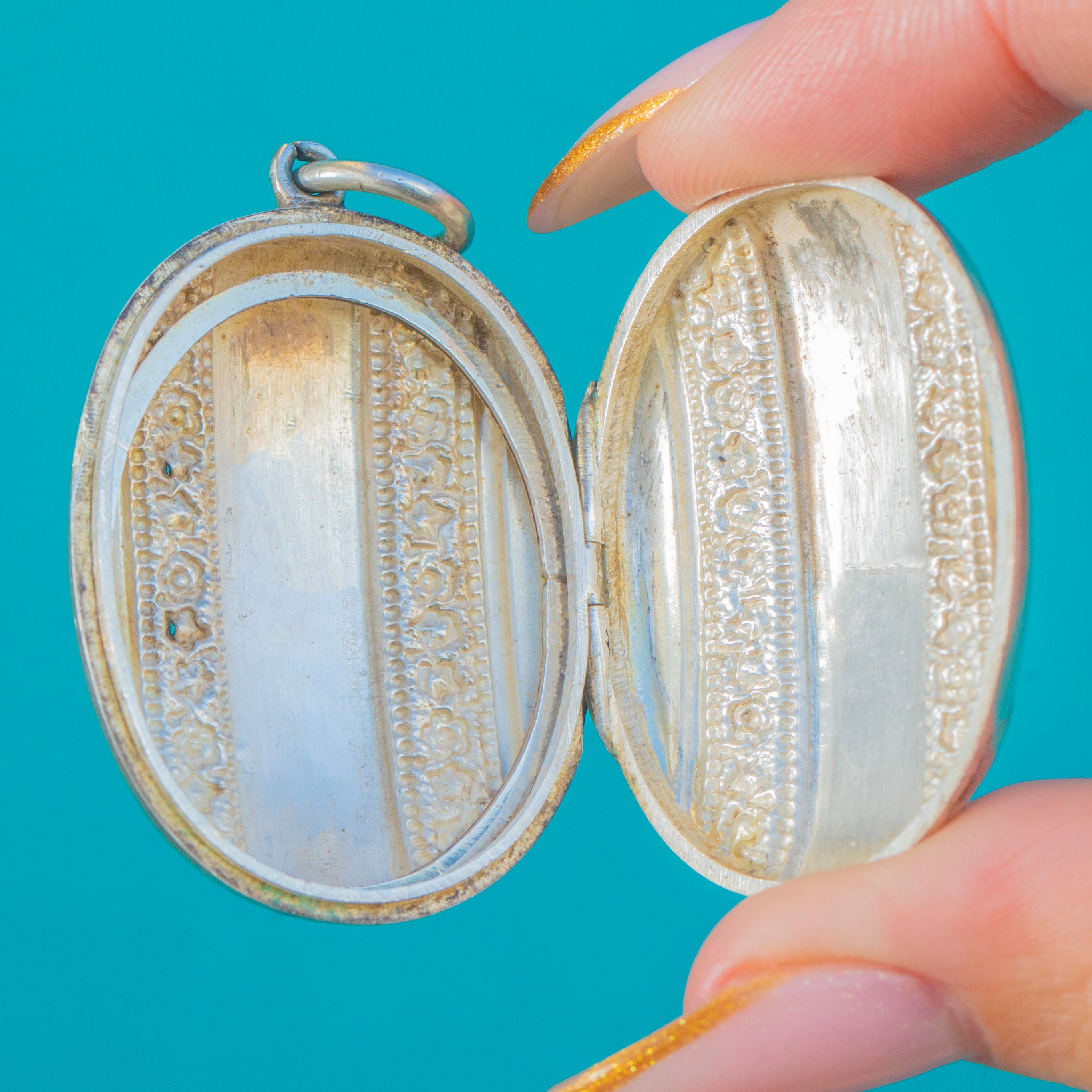 MEASUREMENTS: Locket is 36mm long (excluding bale) x 28mm wide.