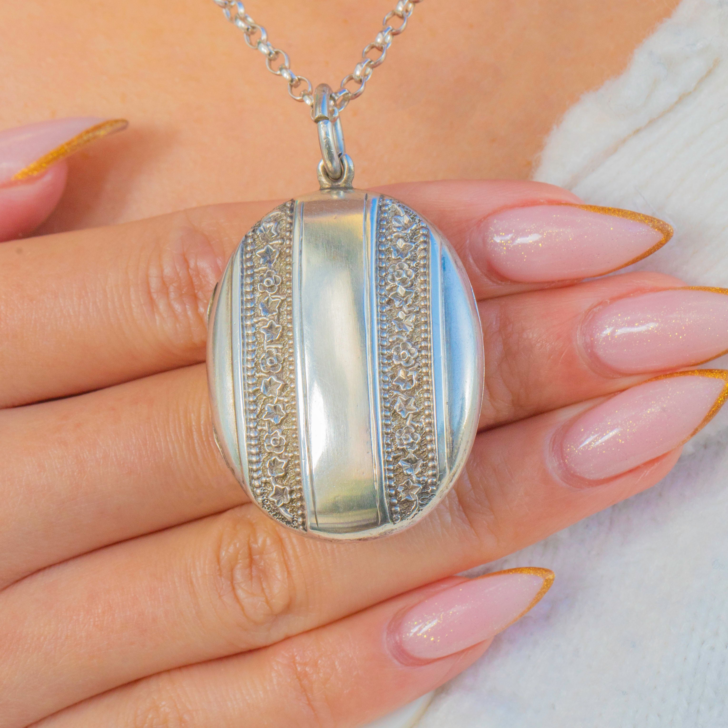 Victorian Sterling Silver Striped Embossed Floral Locket