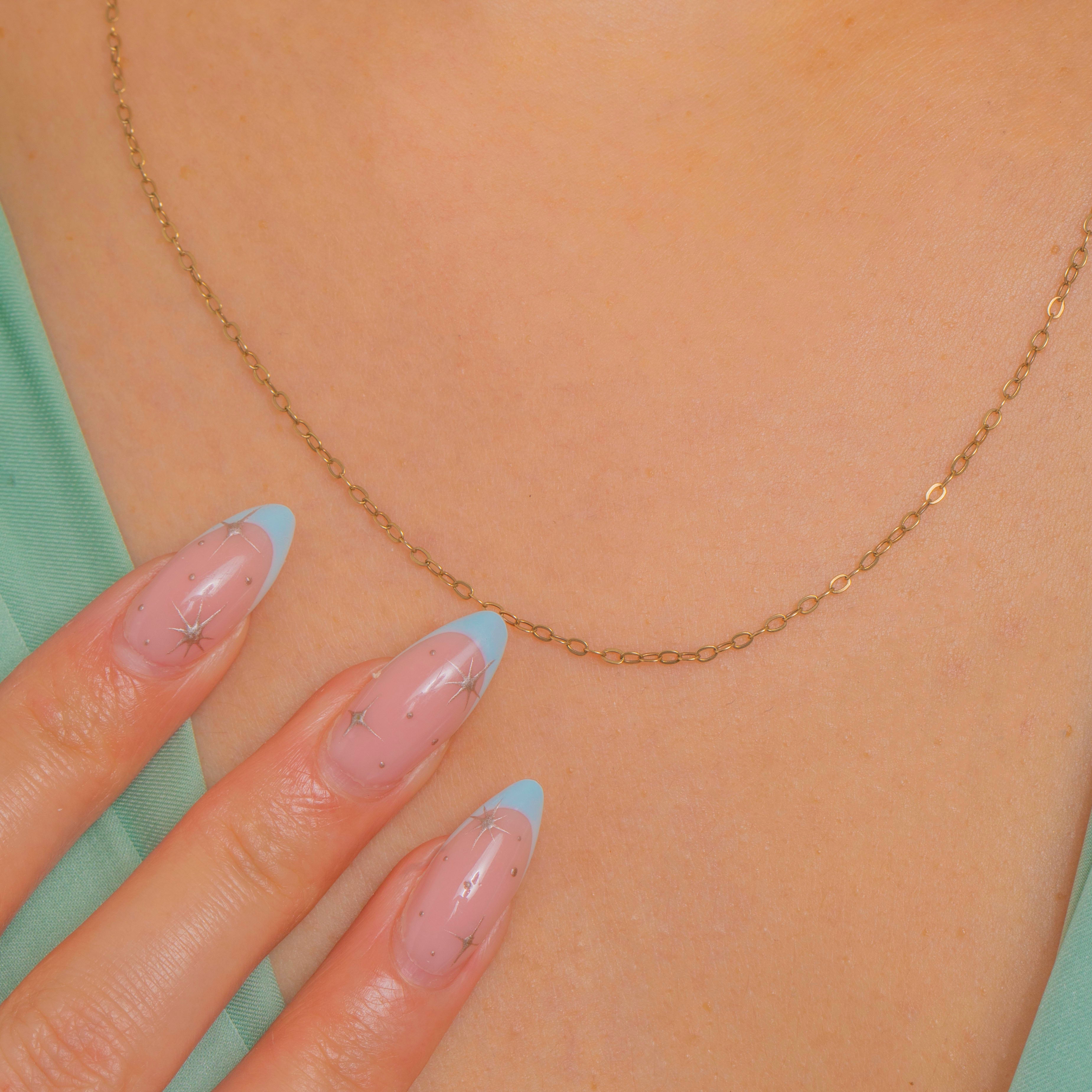 Wear it alone for a subtle glimmer or add your favourite pendant; the delicate profile sits neatly at the collarbone and layers beautifully. A timeless essential you’ll reach for again and again.