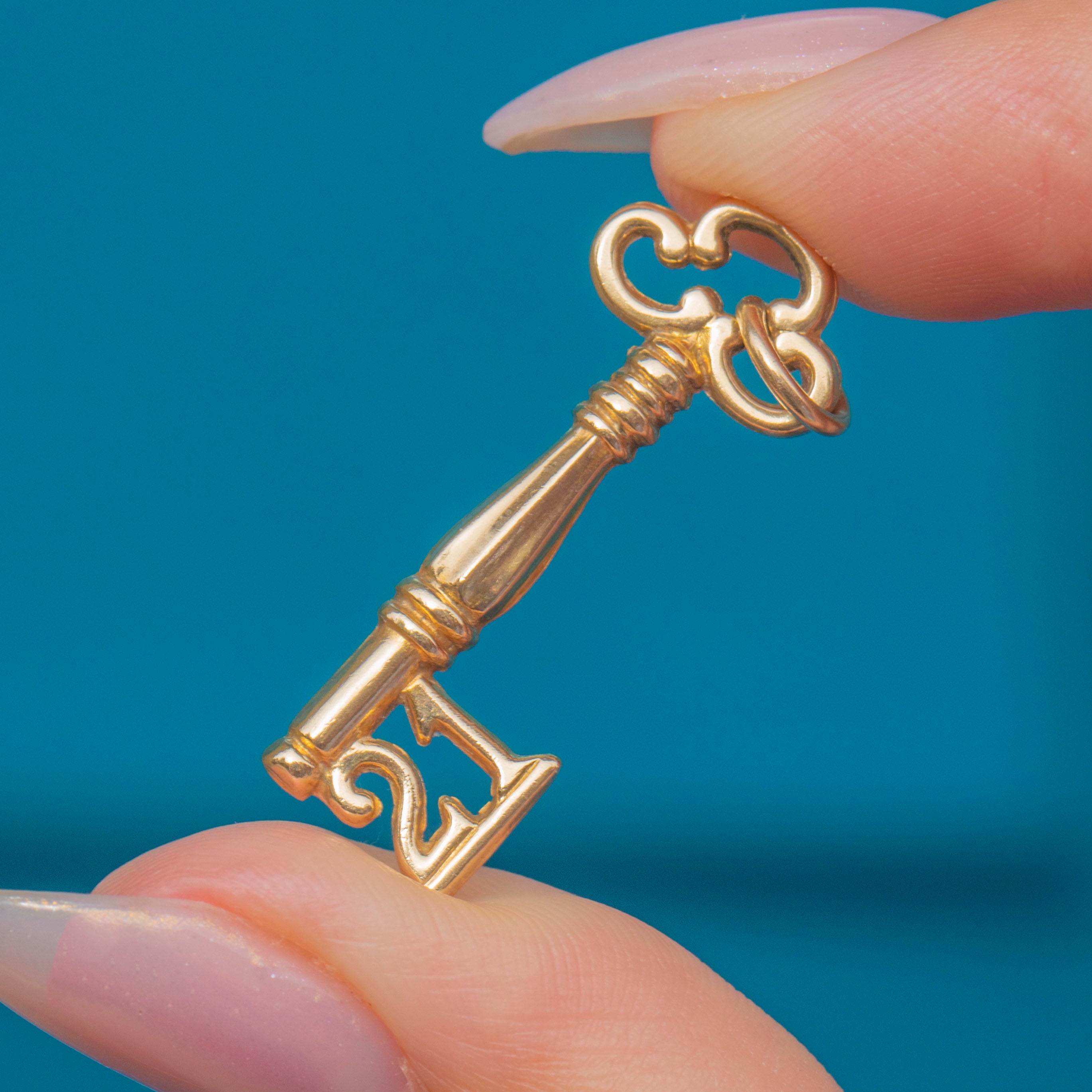 A glorious 9ct Gold 21 key pendant! This cute piece is the perfect gift for a 21st birthday, a key that they can treasure forever.