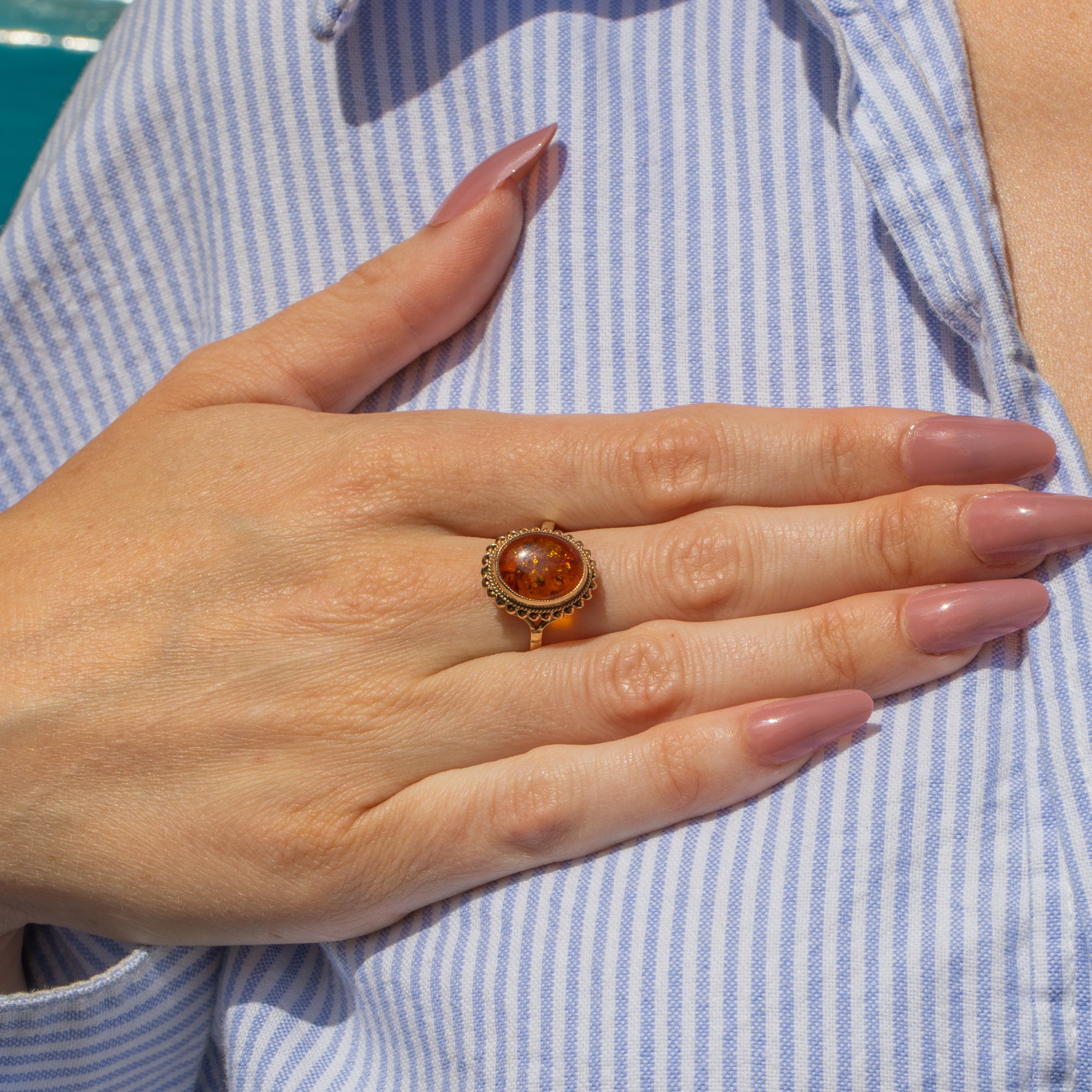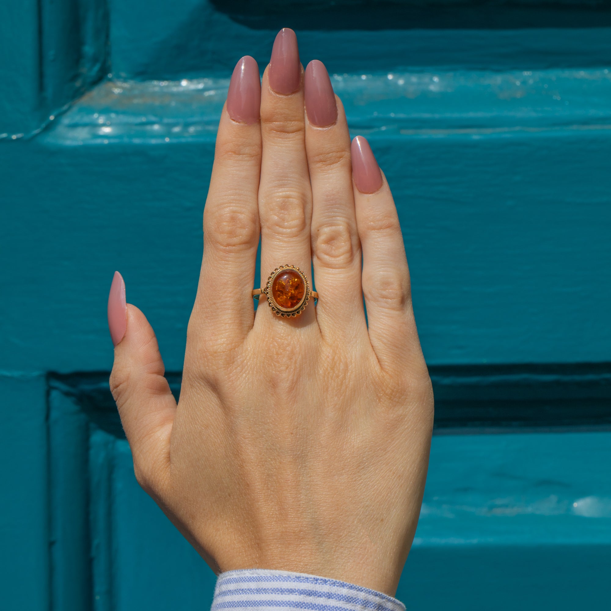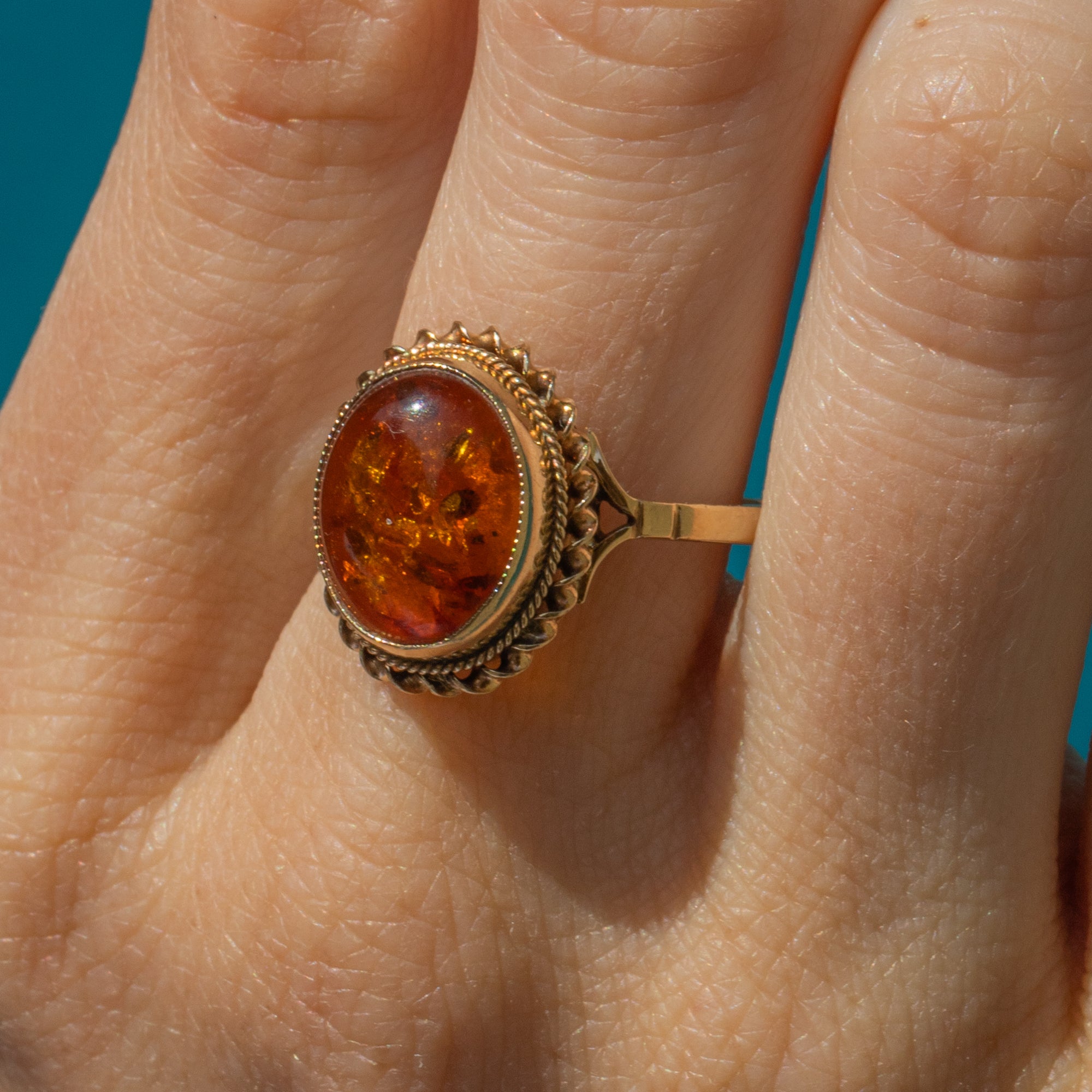 Vintage 9ct Gold Amber Ring, 1.10ct