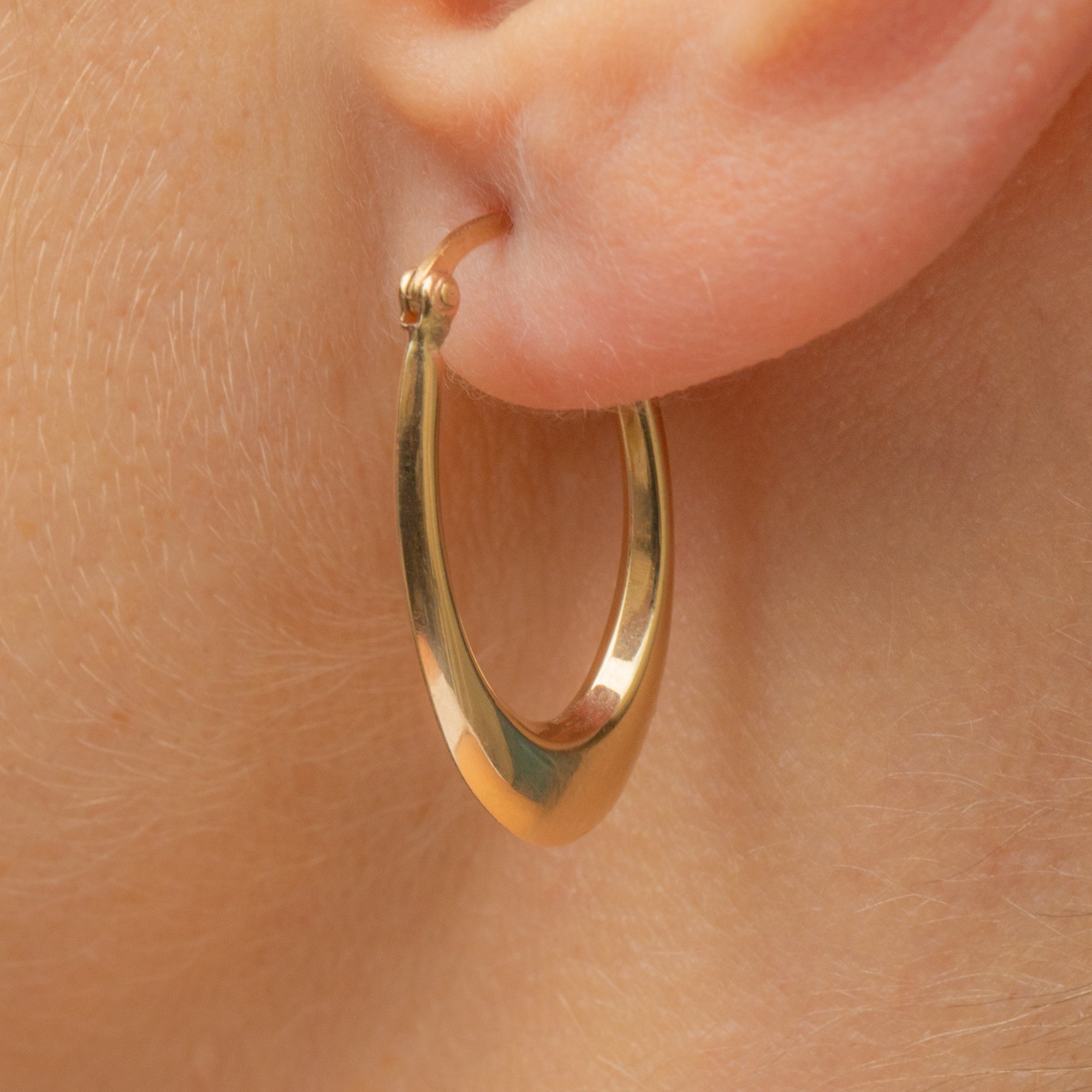 These 9ct Gold oval hoop earrings are an effortlessly cool piece of vintage jewellery perfect for everyday wear! Elegantly shaped with a bold design, these sophisticated beauties will suspend from your lobes like little droplets of sunshine.