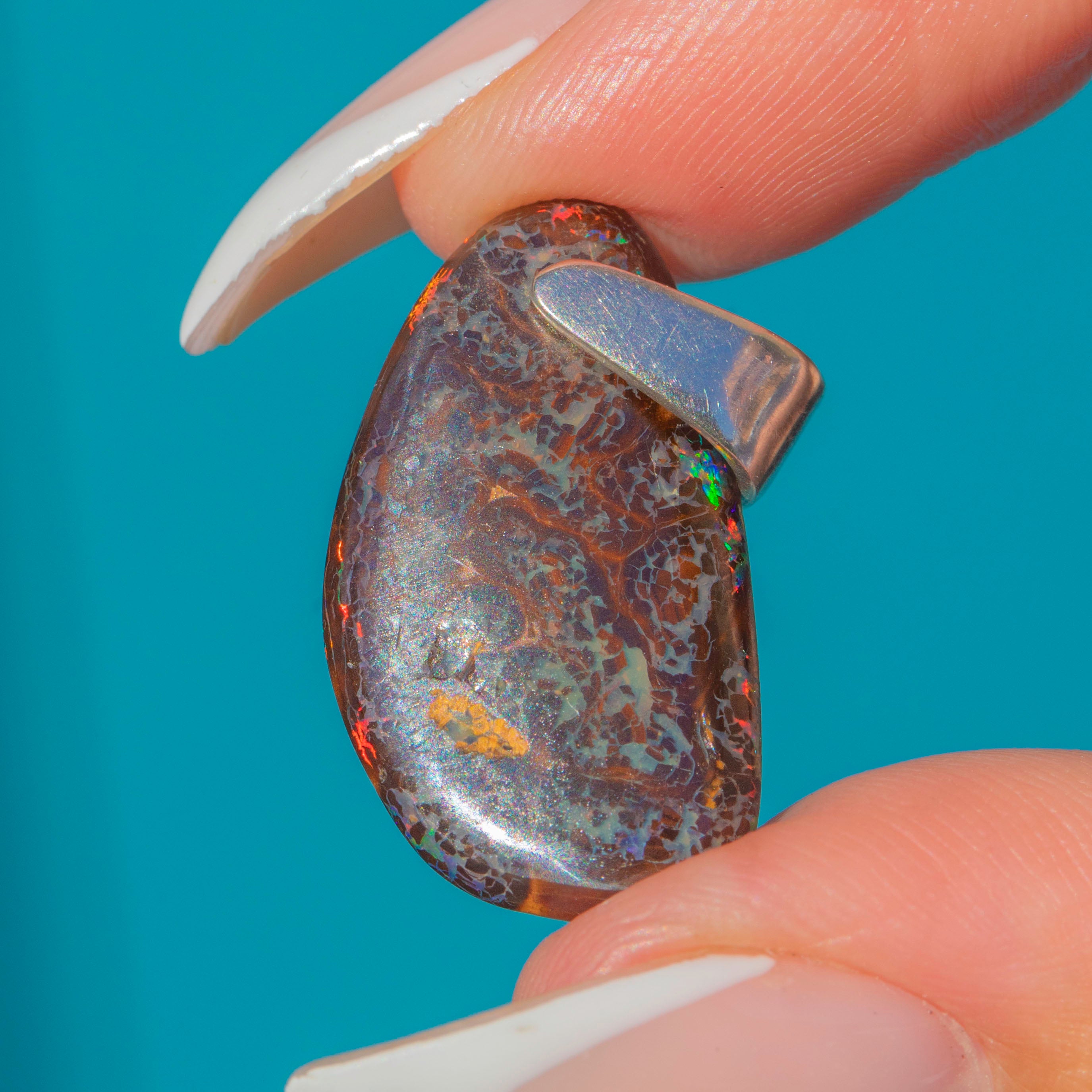 MEASUREMENTS: Opal pendant measures 23mm long x 13mm wide x 5.5mm deep.