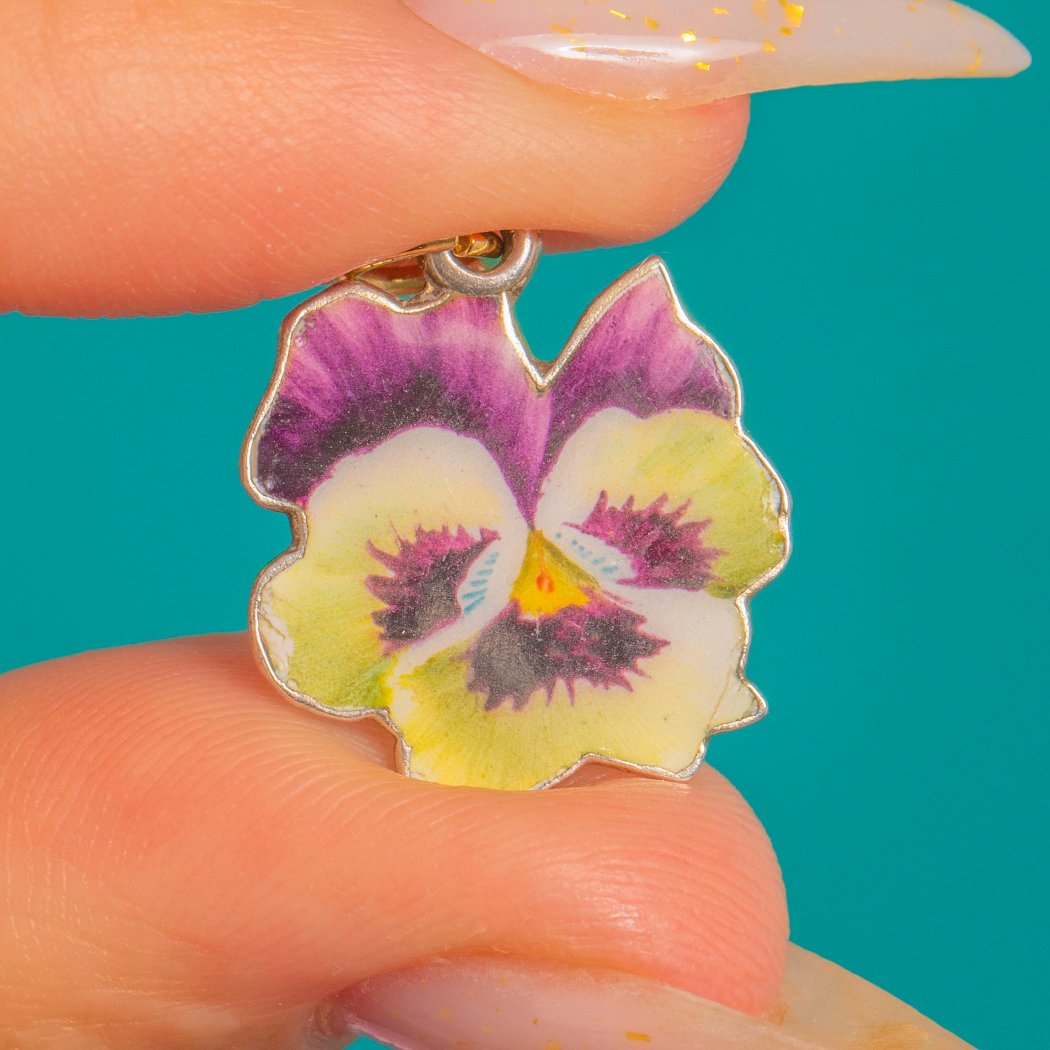 Vintage Silver Enamel Pansy Charm