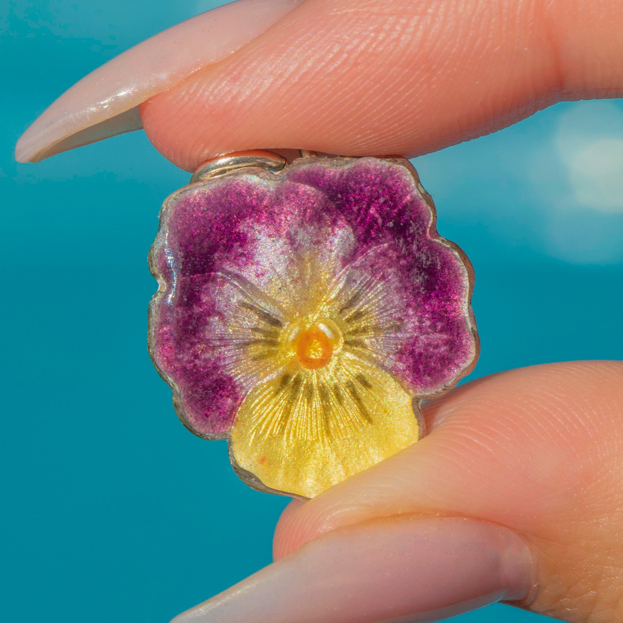 Vintage Sterling Enamel Pansy Flower Charm c.1950